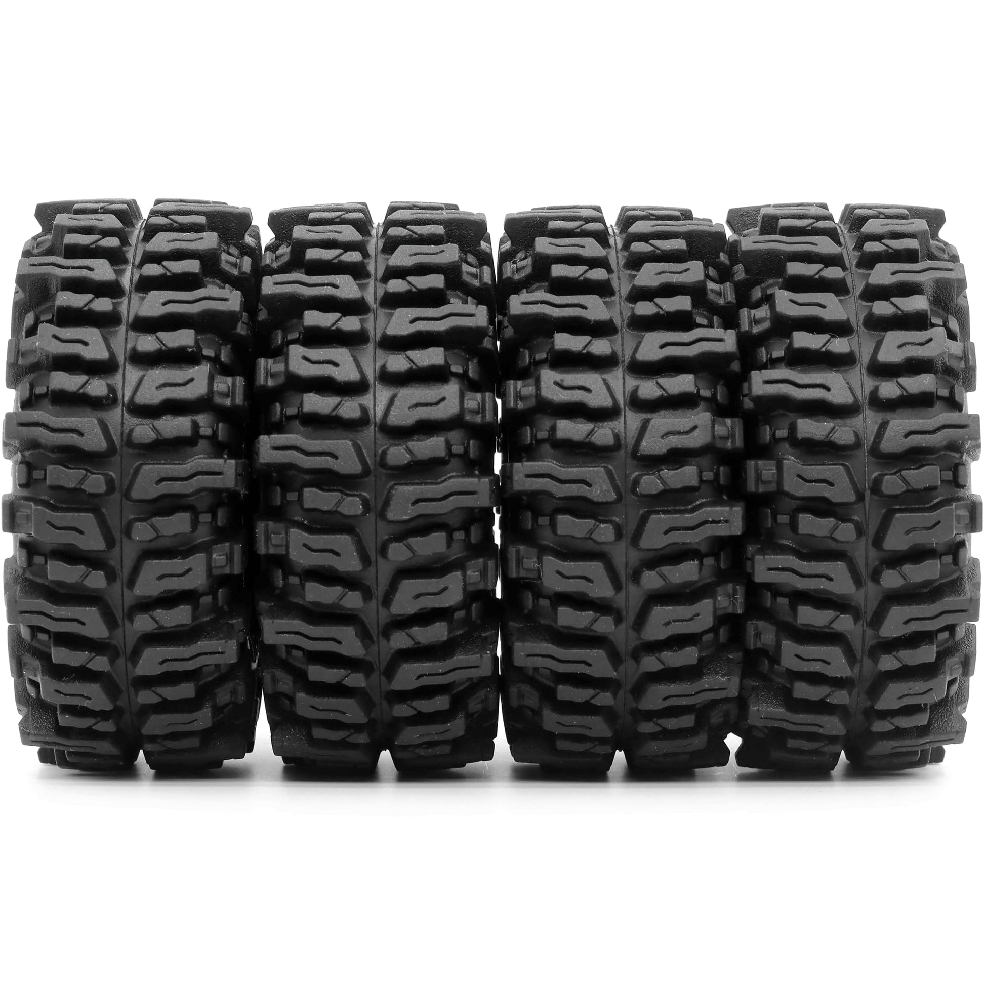 - Q: Can these tires be used on any RC crawler? A: These tires are designed to fit most 1/18 and 1/24 scale RC crawlers, including models like the TRX4M, AX24, SCX24, and FCX24. However, some crawlers may require modifications to the body shell or bumpers for optimal performance.