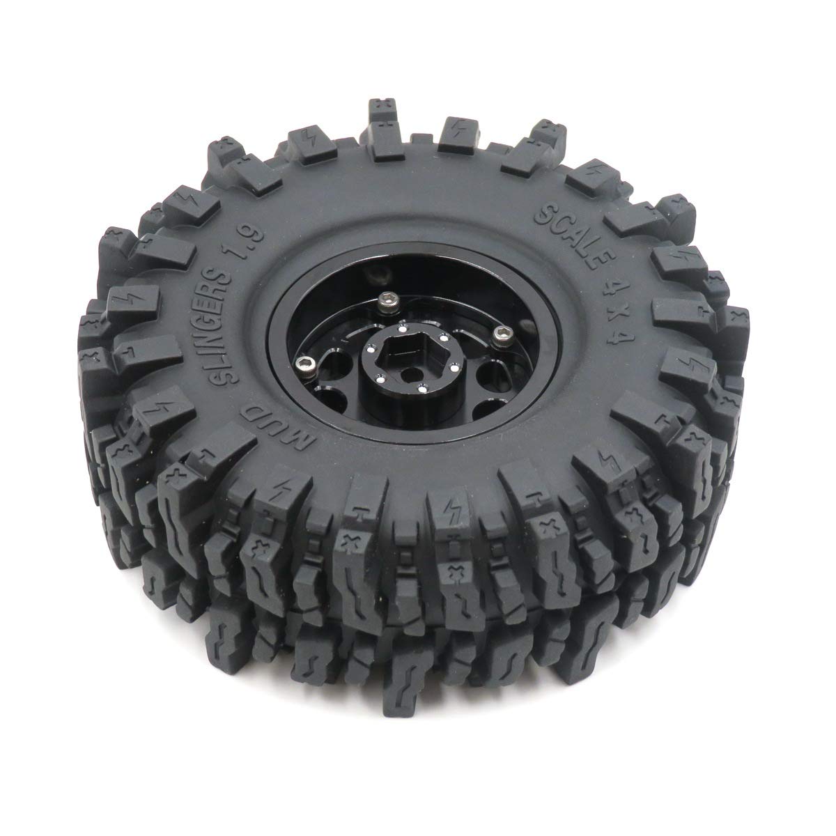 4pcs RC 1.9 Mud Slingers Tires Super Grip Tyre Height 120mm & Aluminum 1.9'' Beadlock Wheel Rims Package List: 4pcs 1.9 Mud Slingers Tyres + 4pcs 1.9 Aluminum Beadlock Wheels Description 1. Material: aluminum Wheel + HOBBYSOUL Soft Sticky Compound Tire ( it is better than common rubber,good heat resistance and good cold resistance, high wear resistance and excellent durability. Sticky Soft compound delivers maximum gripping power for loose conditions - dry and loamy, or wet and muddy and rock Crawling, Design for professional RC crawler. ) 2. Tire diameter: about 120mm (4.72inch) 3. Tire Width: About 43mm (1.69inch) 4. Wheel hex: 12mm 5. Total Weight: about 180g/pc (1pc beadlock wheel + 1pc tire with foam)