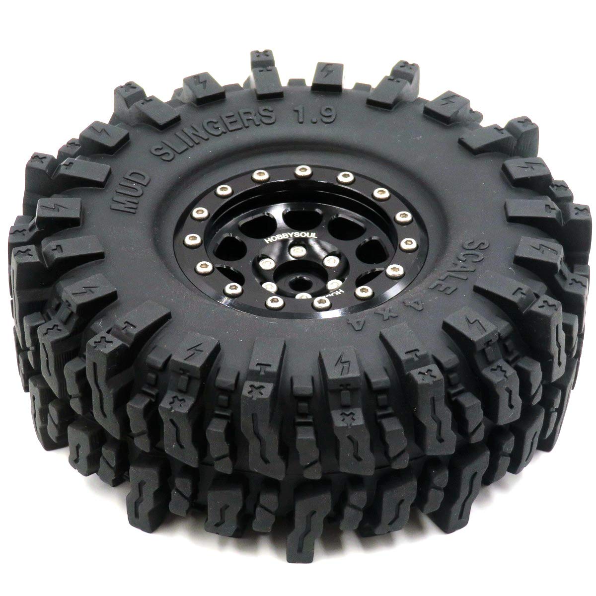 View compareHOBBYSOUL 1.9 Mud Slingers Tires Super Grip Sticky Tyre 120mm / 4.72'' tall & 1.9 Beadlock wheels Rims Hex 12mm Black For 1/10 C