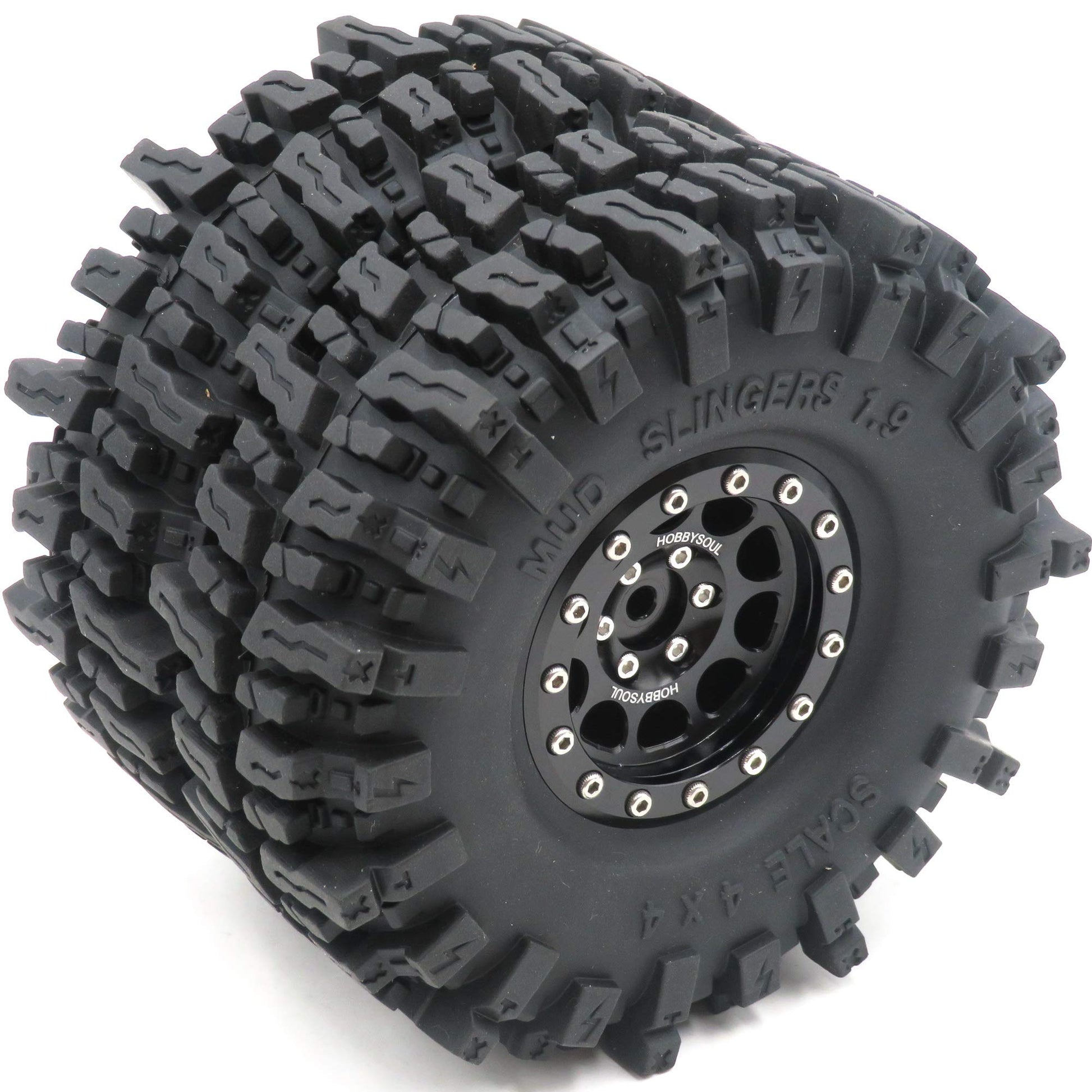 HOBBYSOUL 1.9 Mud Slingers Tires Super Grip Sticky Tyre 120mm / 4.72'' tall & 1.9 Beadlock wheels Rims Hex 12mm Black For 1/10 C