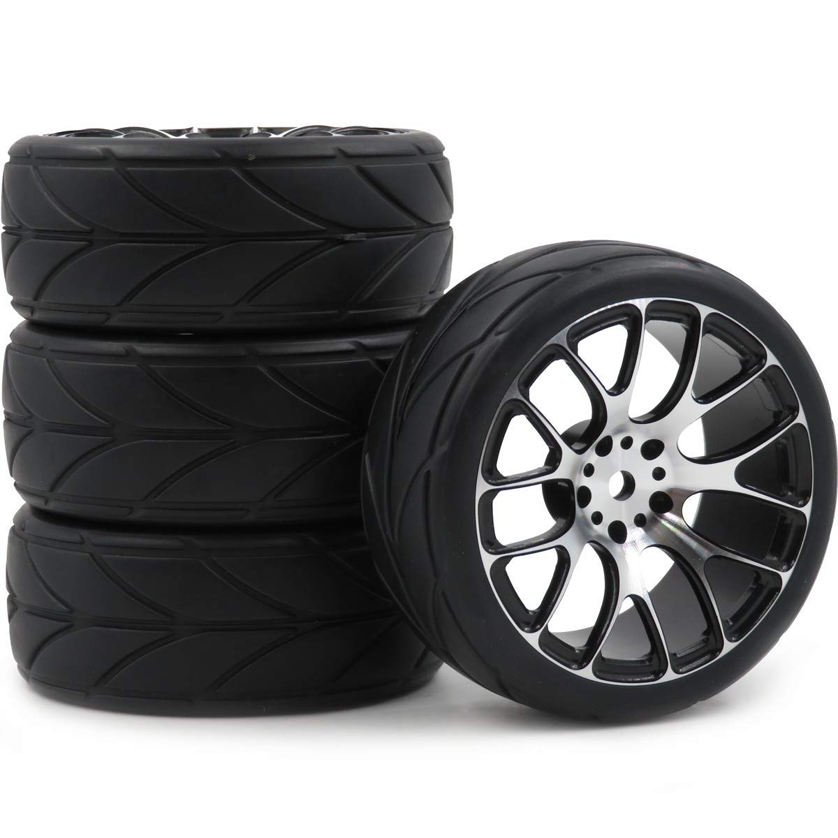 View comparehobbysoul 4pcs New RC 1/10 On Road Tires Soft & Alloy Aluminum Rims Hex 12mm