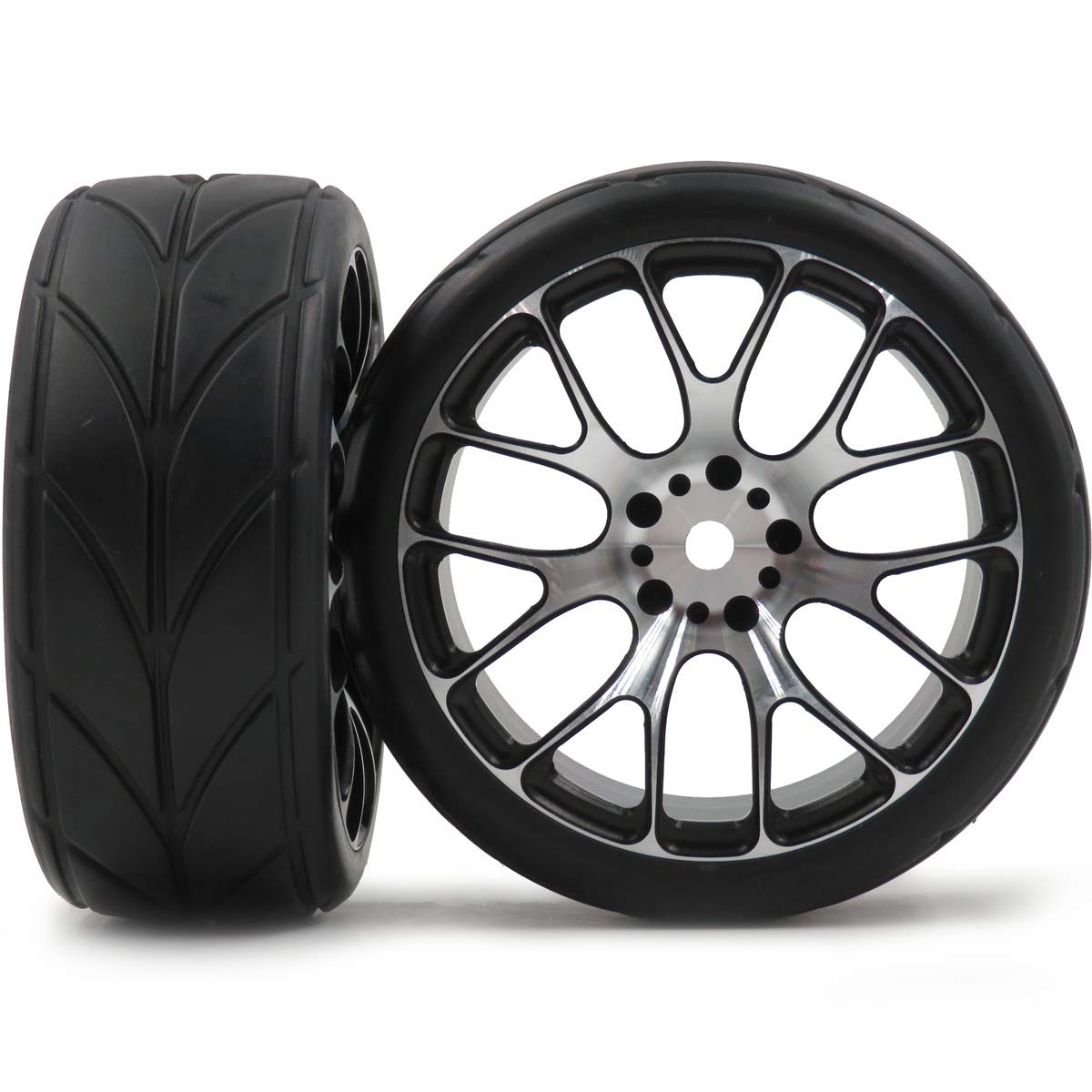 hobbysoul 4pcs New RC 1/10 On Road Tires Soft & Alloy Aluminum Rims Hex 12mm
