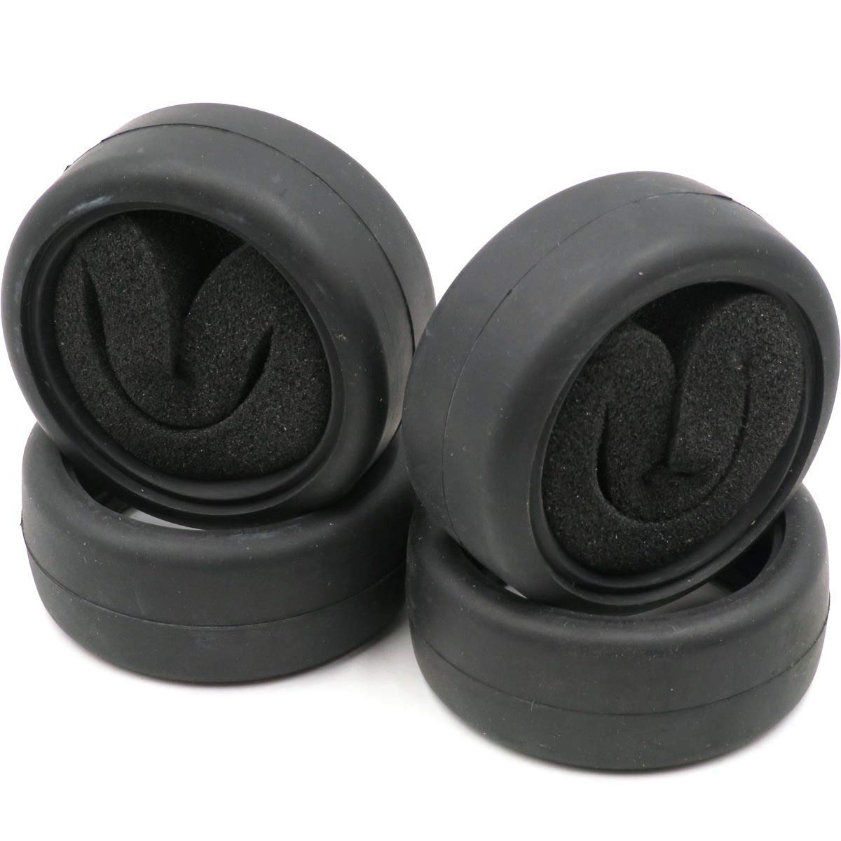 hobbysoul 4pcs RC 1/10 On Road Slick Tire Rubber Tyre Fit for 1:10 Touring Drift Car Wheel Rim