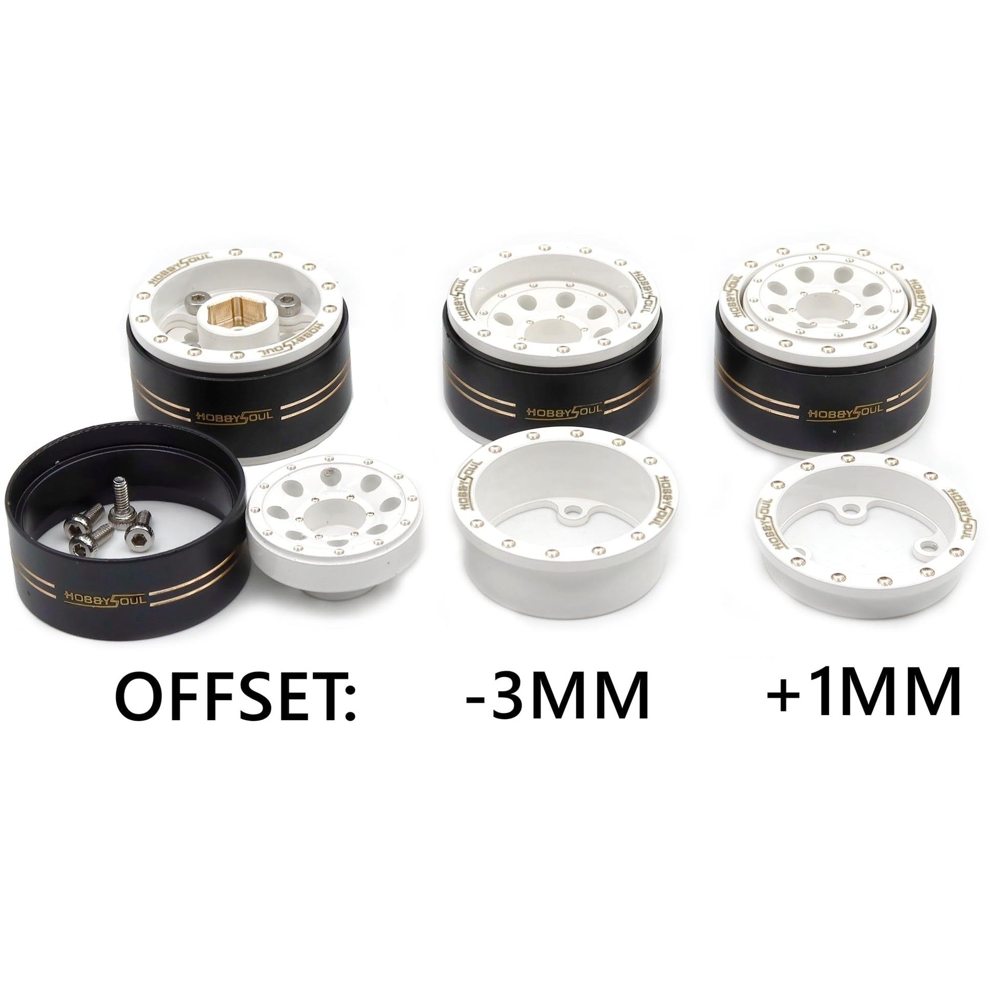 - Q: What is the offset adjustment range for the HOBBYSOUL Adjustable Offset Beadlock Wheels? A: The HOBBYSOUL Adjustable Offset Beadlock Wheels offer two offset options: -3mm negative offset and +1mm positive offset. The +1mm offset is similar to the original Axial SCX24 wheel offset, while the -3mm offset increases spacing between hubs for improved stability.