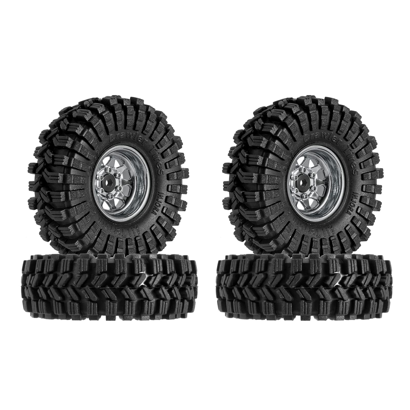 INJORA 1.0 Beadlock Wheel Tires Set -3.78mm Offset Wheel Rims for 1/18 1/24 RC Crawler Car Axial AX24 SCX24 FMS FCX24 TRX4M,Silv