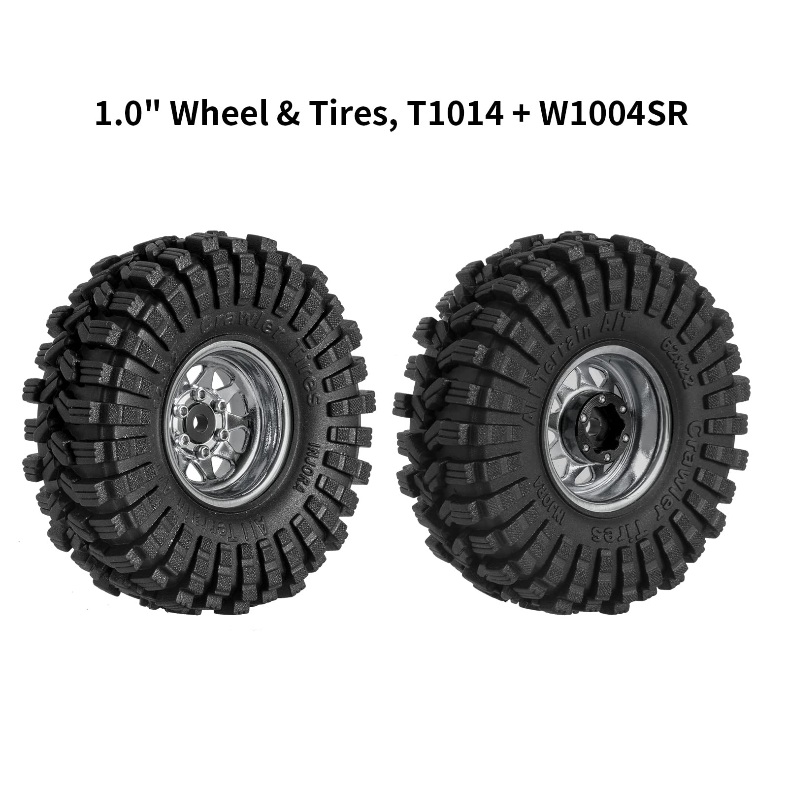 - Q: What types of RC cars are compatible with the INJORA 1.0 Beadlock Wheel Tires Set? A: The INJORA 1.0 Beadlock Wheel Tires Set is designed for 1/18 and 1/24 scale RC crawler cars, specifically compatible with models like Axial AX24, SCX24, FMS FCX24, and TRX4M.