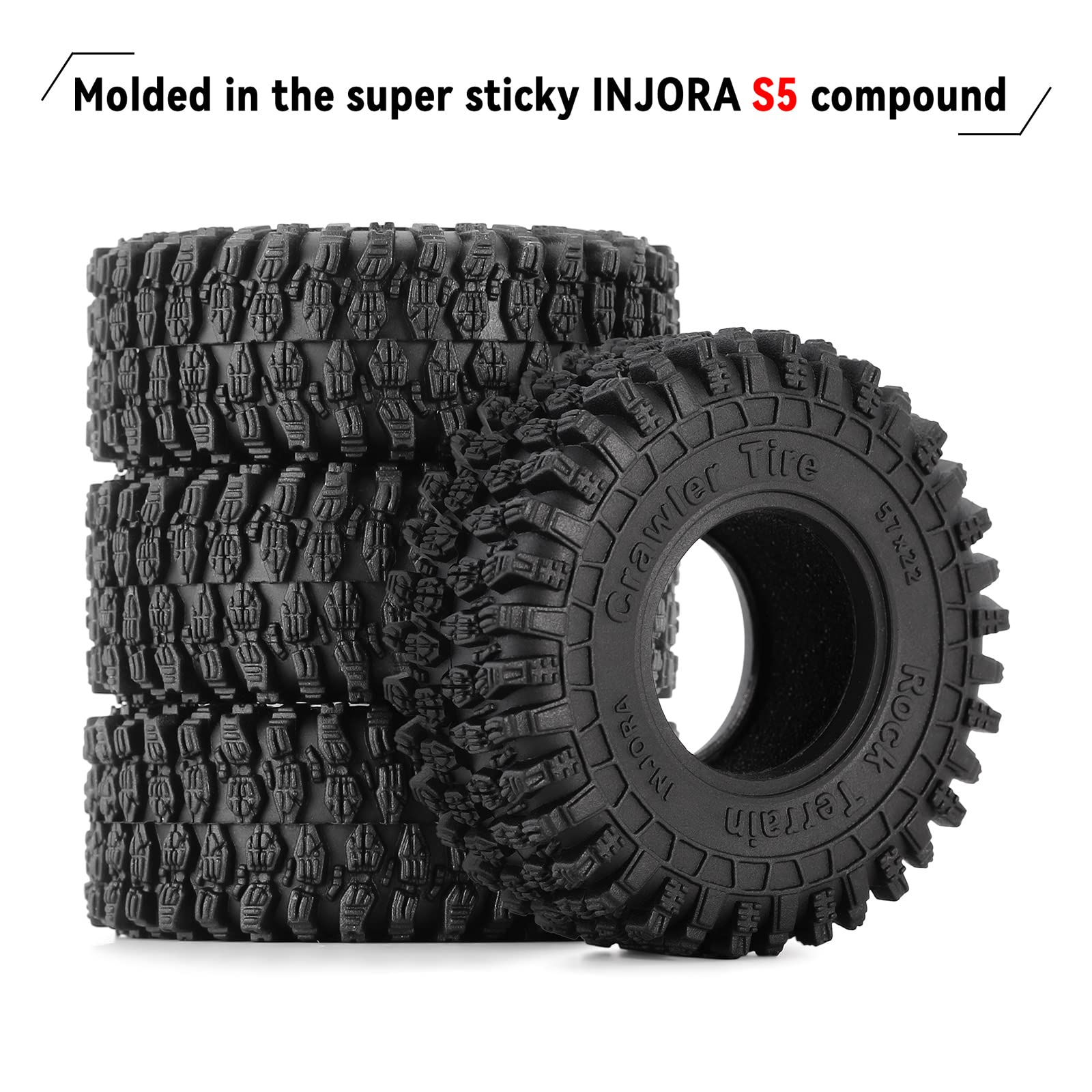 INJORA 1.0 Tires - 57 * 22mm S5 Super Soft Sticky Crawler Tires for TRX4M Axial AX24 SCX24 FCX24 Enduro24 Upgrade,T1016