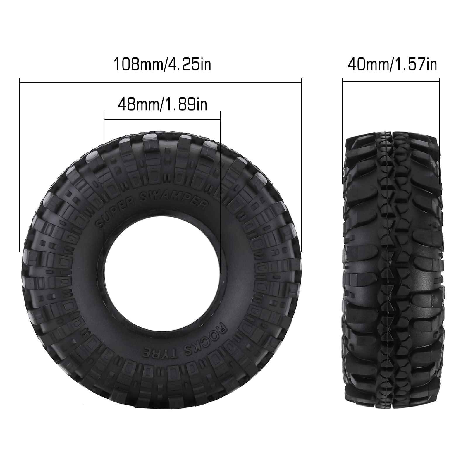 - Q: What are the dimensions of the INJORA RC Tires? A: The INJORA RC Tires have an outer diameter of 108mm, a width of 40mm, and an inner diameter of 48mm, making them ideal for 1/10 scale RC crawlers.