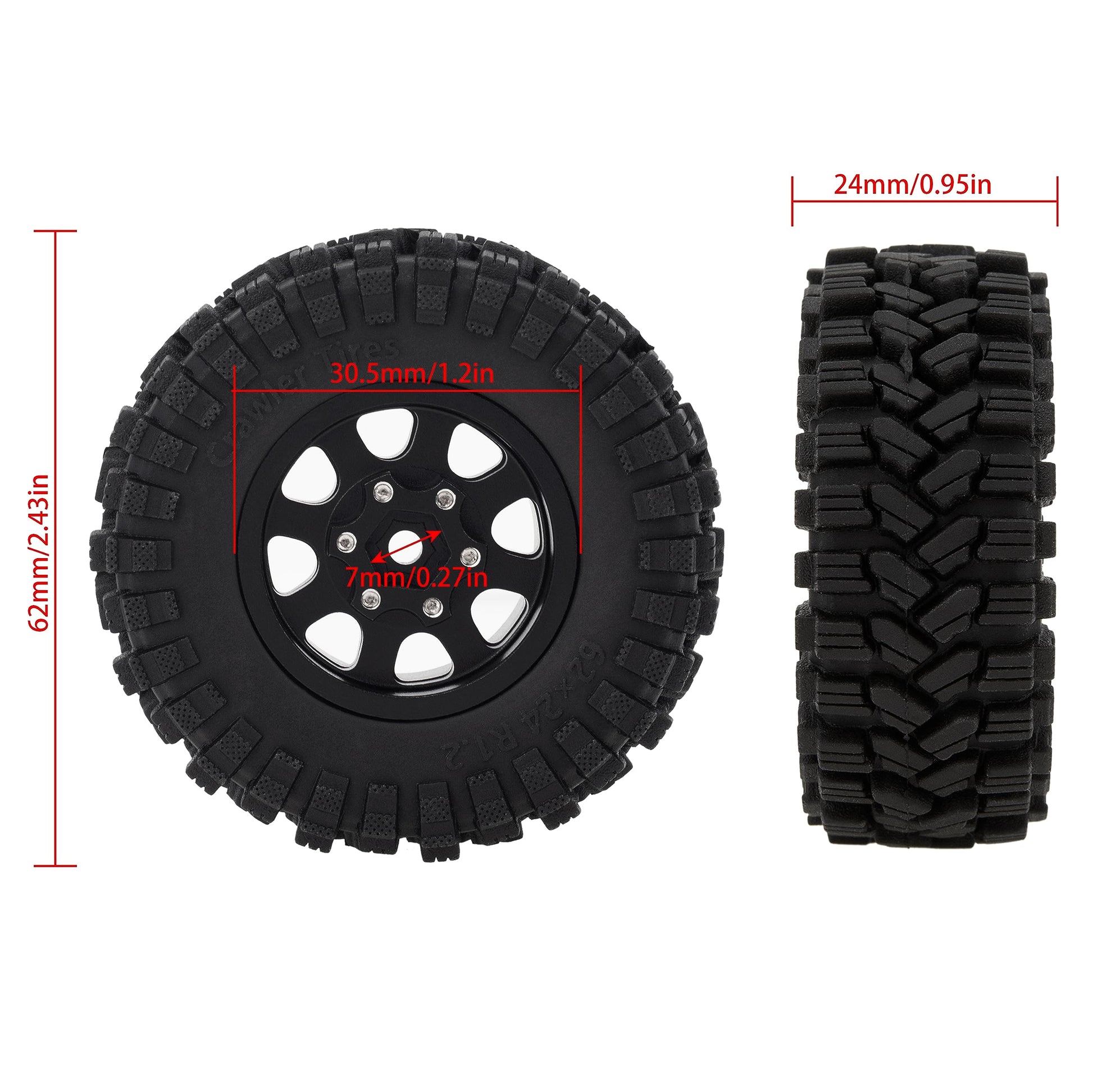 - Q: What RC crawler models are compatible with the MEUS RACING 1.2 Beadlock Wheels Tires Set? A: The MEUS RACING 1.2 Beadlock Wheels Tires Set is compatible with various RC crawler models, including the 1/18 TRX4M Defender, Bronco, K10, F150, and the 1/24 SCX24 Bronco, C10, JLU, Deadbolt, Gladiator, as well as the FMS 1/24 FCX24.