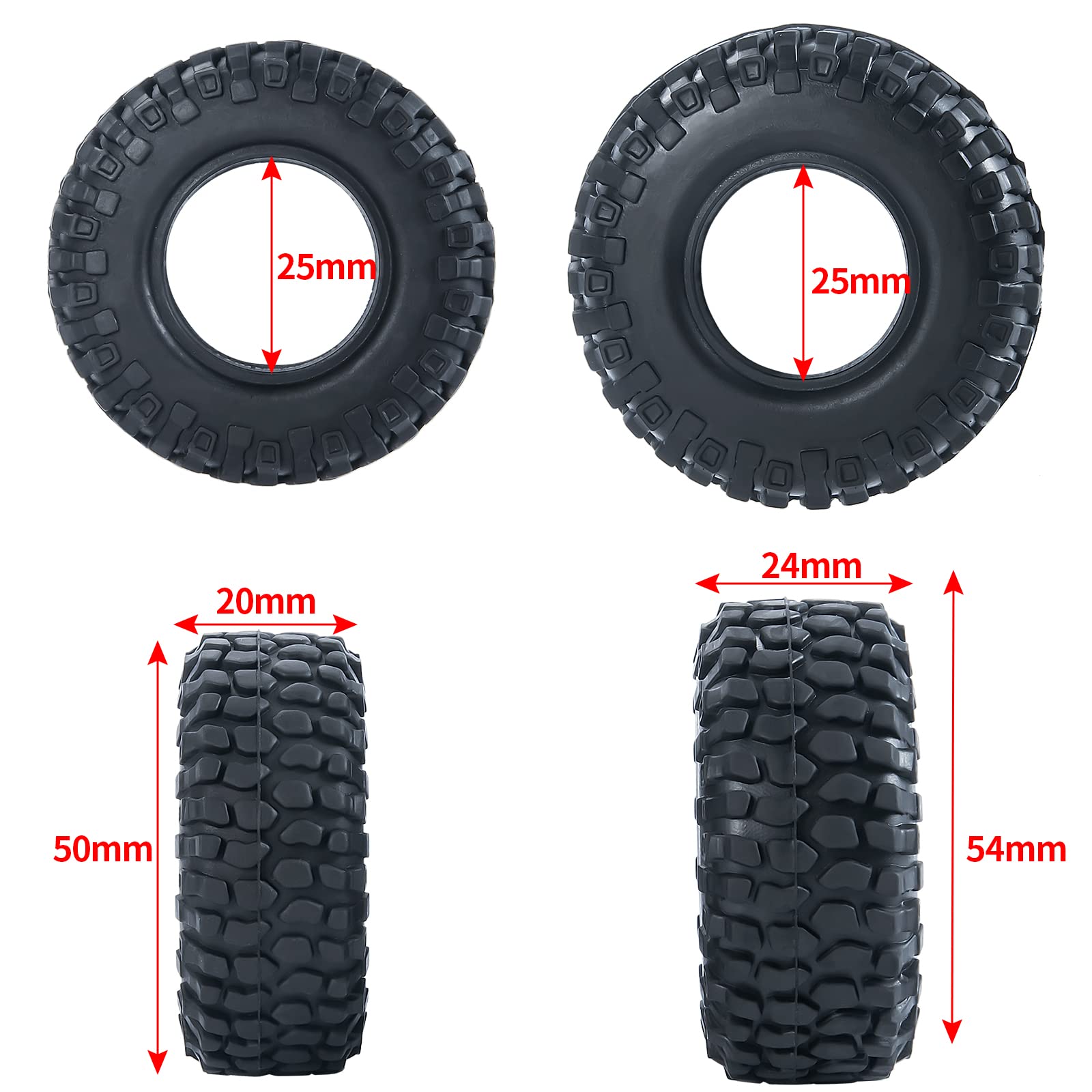 MOHERO 1.0 Crawler Tires Soft Rubber Wheel Tires 4PCS for 1/24 Axial SCX24 90081 AXI00001 AXI00002 AXI00005 AXI00006 RC Crawler Car (50mm)