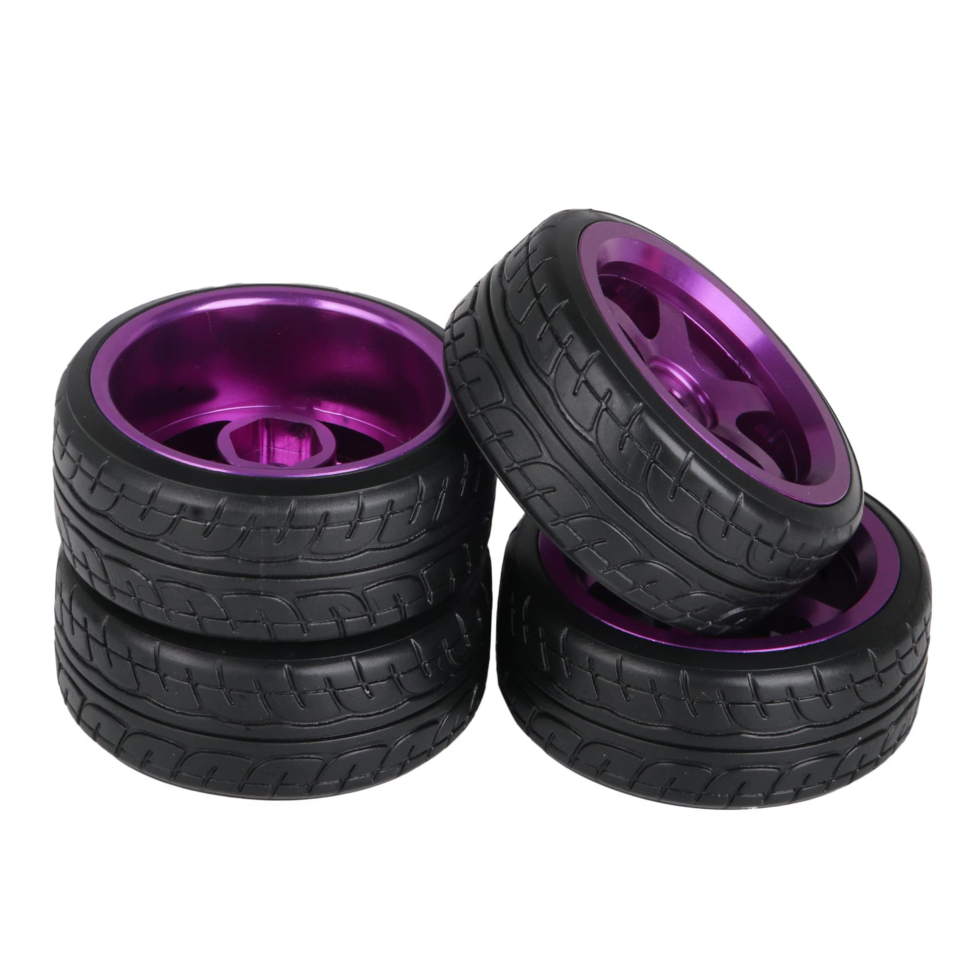 Mxfans 4 Aluminum 5 Spoke Purple Wheel Rim & 4 Black Tyre for RC1:10 On-Road Car