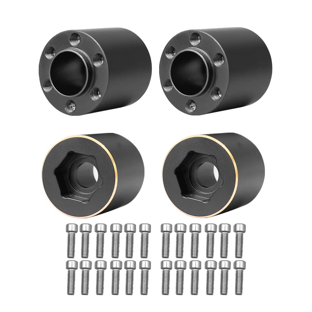 - Q: How do I install these wheel hex adapters on my RC crawler? A: Installation is straightforward. Simply remove your existing wheel hex, then slide the brass weight adapter onto the axle, and secure it in place before reattaching your wheels. Ensure that all components are tightened properly to avoid any issues during operation.
