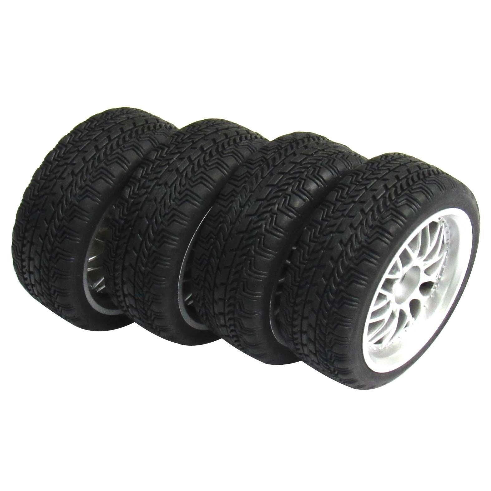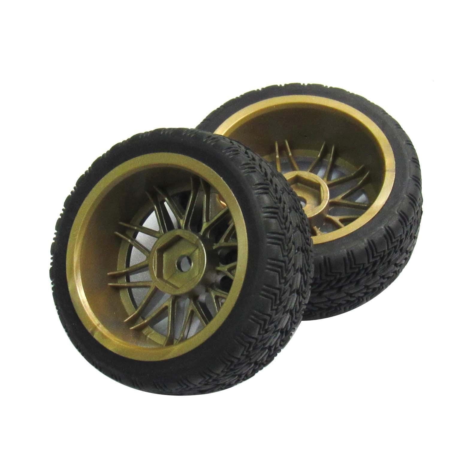 - Q: What materials are used in the construction of these wheel rims and tires? A: The tires are made from soft rubber for enhanced grip, while the wheels are constructed from durable plastic, ensuring a lightweight yet sturdy performance during races.