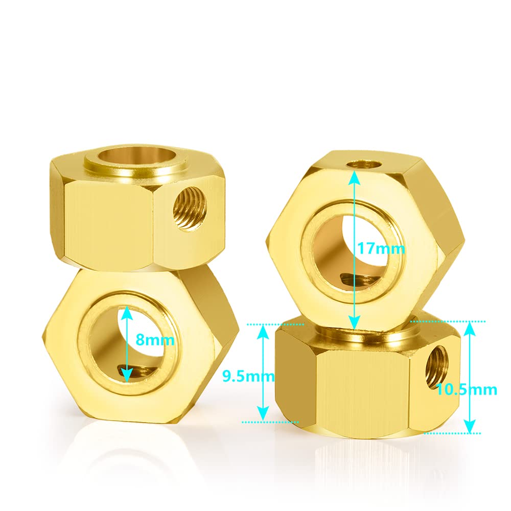 QUPA AM STORE 4PCS Brass Wheel Hub Hex Adapter 9.5mm(+2mm) for 1/6 Axial SCX6 AXI05000 RC Crawler Car