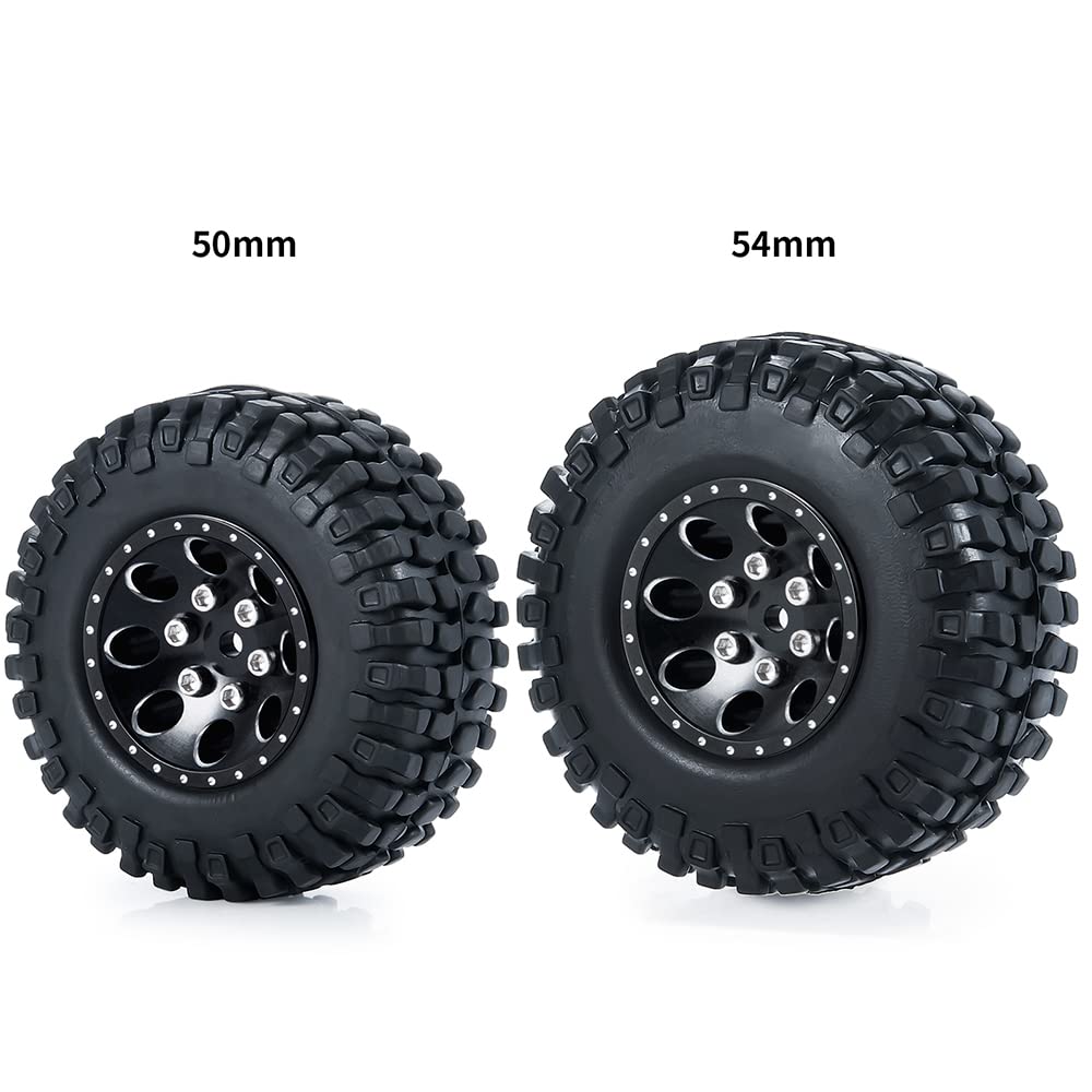 4PCS 1.0'' Crawler Tires Micro Rubber Tires for 1/24 Axial SCX24 90081 AXI00001 AXI00002 AXI00005 AXI00006 RC Crawler CarFeatures:1. The tire is very soft, the tread is deep, and the grip is good. 2.Wider tires increase the wheel stability. 3.Easy to install, you can get the perfect combination of looks and performance on your model kit.4. These tires are made of super soft rubber for good grip over all kind of terrain. 5.Fits for 1/24 Axial SCX24 90081 AXI00001 AXI00002 AXI00005 AXI00006 Deadbolt RC Crawler Car . Specification: Item name: SCX24 Wheel Tires. Tire material: Rubber.Size: Outer Diameter: 50mm ,Inner Diameter: 25mm,Width: 20mm.Outer Diameter: 54mm ,Inner Diameter: 25mm,Width: 24mm Net Weight: 42g/4pcs. Pacakge Includes: 4pcs SCX24 Wheel Tires