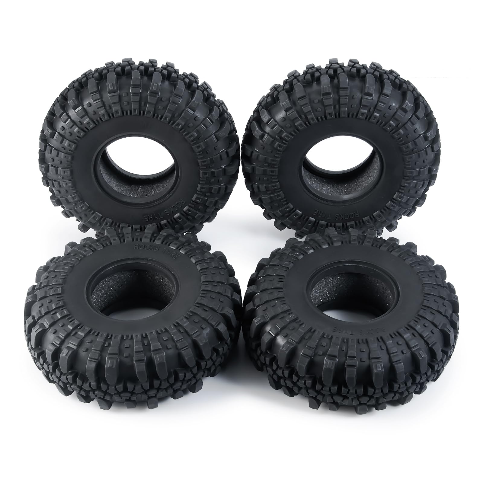 RCLIONS 4PCS 1.9inch RC Crawler Tires Rubber Wheel Tyre 110mm/4.3'' with Foam Insert for 1/10th AXIAL SCX10,TRX4,SCX10 II,D90,D1