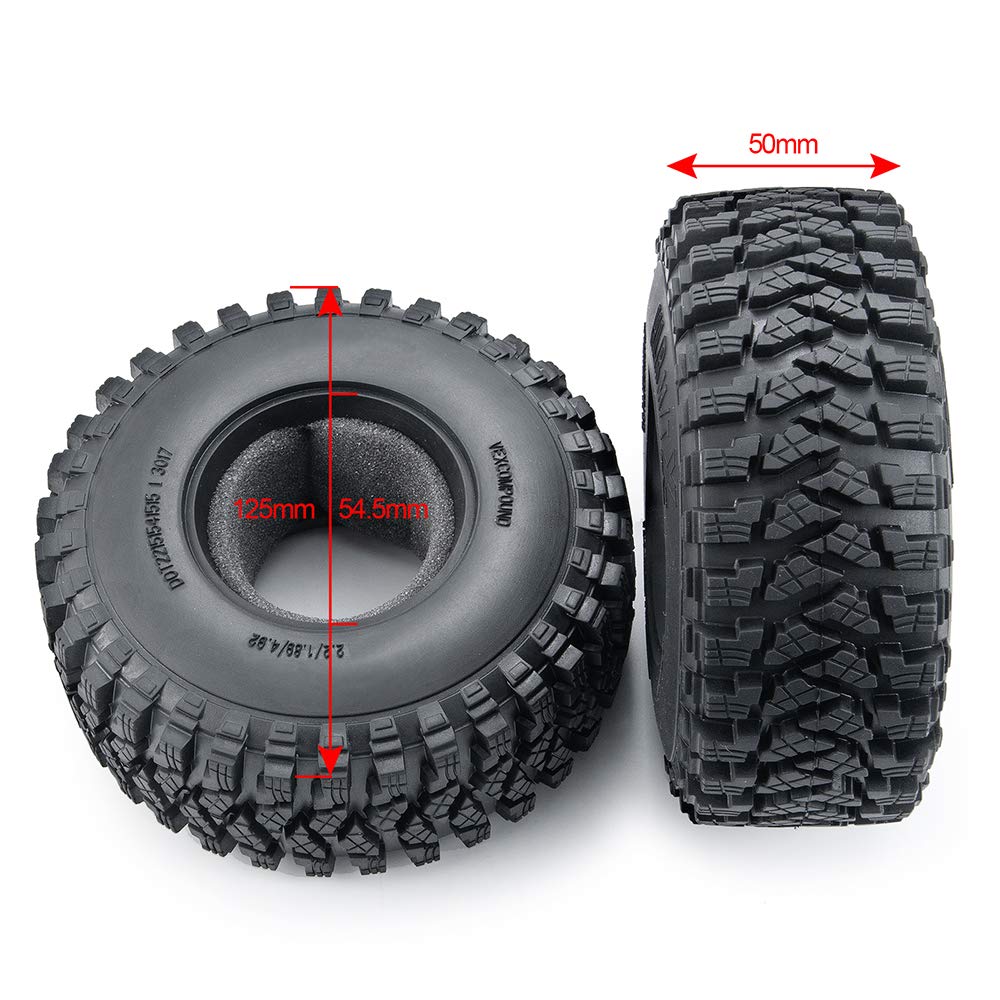 RCLIONS 4pcs 2.2inch 125mm RC Crawler Wheel Tyre Tires with Foam Insert for 1/10 RC Car Axial SCX10 Wraith RR10 TRX4