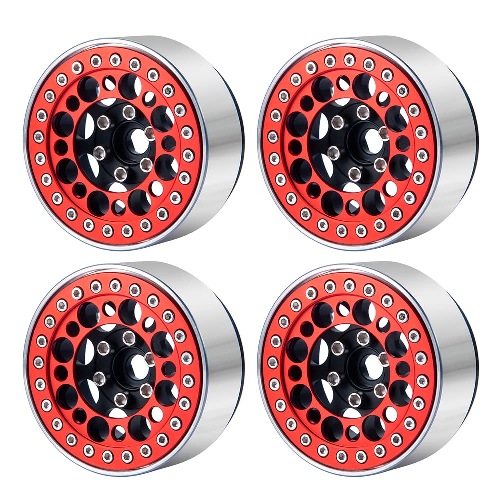 View compareRCLIONS 4pcs Aluminum 1.9inch RC Beadlock Wheel Rim Replacement Ring for 1:10 Crawler RC Car 1.9'' Wheels/Rims (Red)