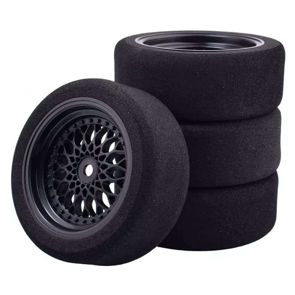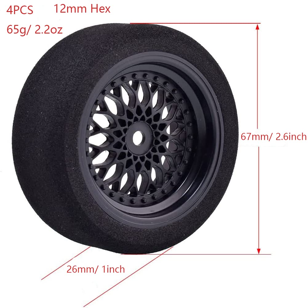 Shaluoman 4Pcs 1/10 On-Road Foam Tires& 2080-3mm Wheel Rims 12mm Hex for HSP HPI RC Racing Car Toy, Black