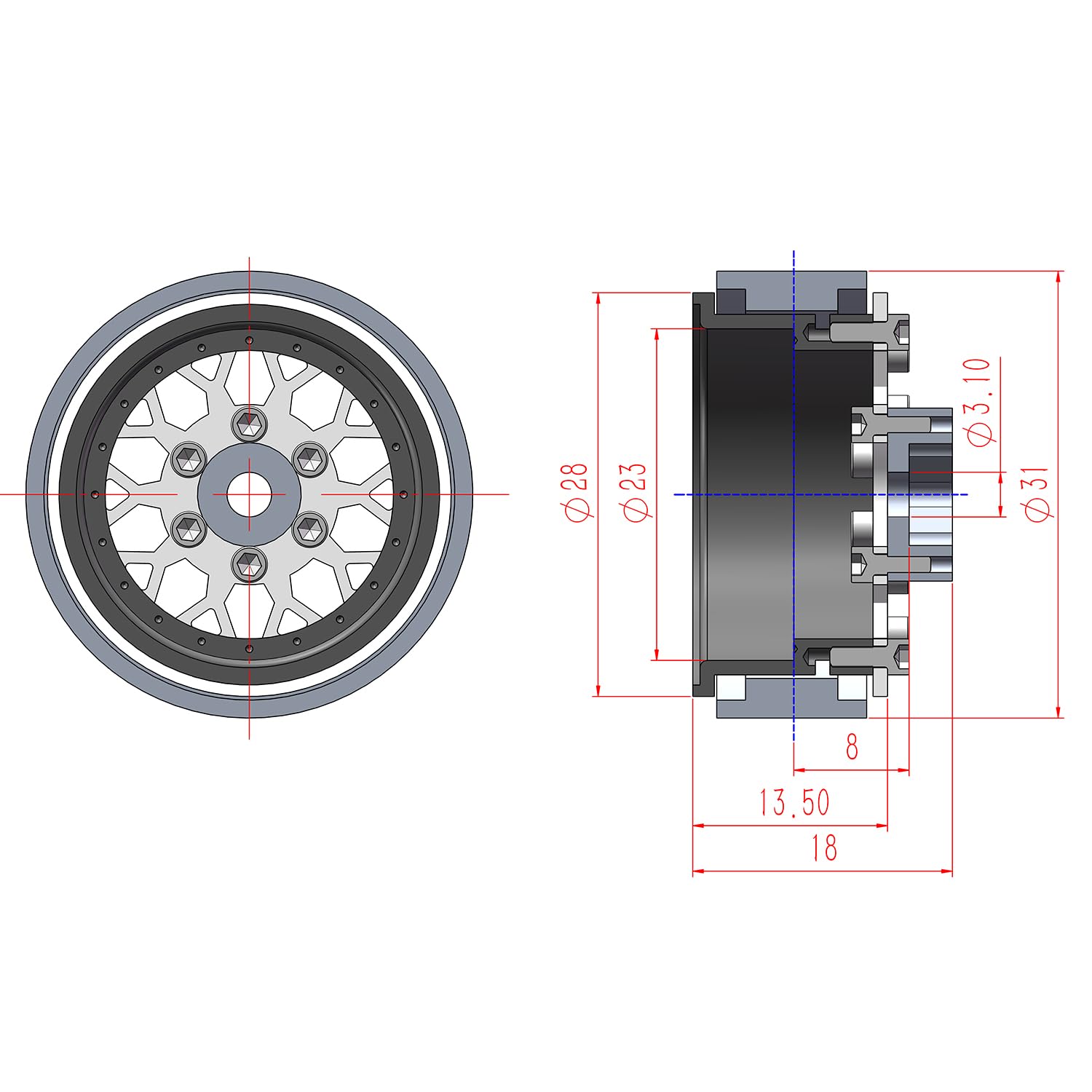 - Q: What are the benefits of using Grade 5 Titanium in wheel hubs? A: Grade 5 Titanium is known for its high strength-to-weight ratio and exceptional durability, making it ideal for wheel hubs. This material ensures that the wheels are lightweight yet strong enough to withstand harsh conditions, enhancing the performance of your RC crawler.