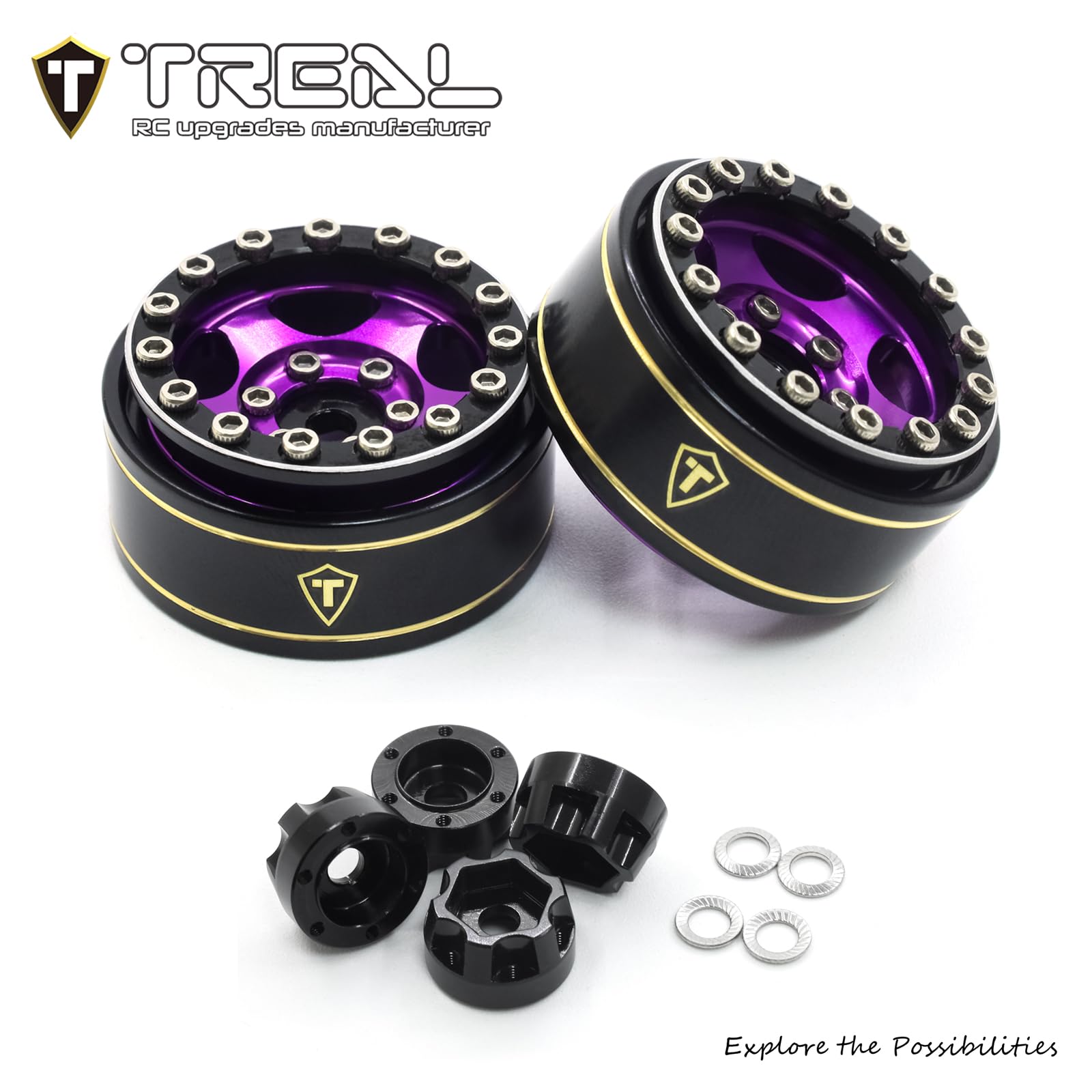 Treal 1.0 Beadlock SCX24 Wheels (4P) Classic 5-Star 1 Micro Beadlock Wheels for Axial 1/24 Deadbolt Betty C10 Gladitor Bronco 27.3g Features: - 1.0 wheel size for 7mm Hex drive 1:24 scale crawler -Beadlock design,with 15 screws for top rings and 5 screws for the hex -Precision CNC machined aluminum 6061 Rims -Brass rings (balck coated) to add weight and help the crawler performance Specification: -Outer Diameter: 31mm(1.22) -Width: 15mm (0.59) -Weight: Approx 27.3grams(0.06 lb) per wheel (fully assembled) -Hex Hub: 7mm(0.275) -Axle Through Hole Dia.: 3mm(0.118) Package Includes: -Aluminum Wheel rims with Brass Rings assemble kit 4pcs -Hardwares After-sales service >>Please kindly contact us for any manufacture quality or install issue, we will answer within 24 hours. >>We provide free replacement or 100% refund for any quality issue.