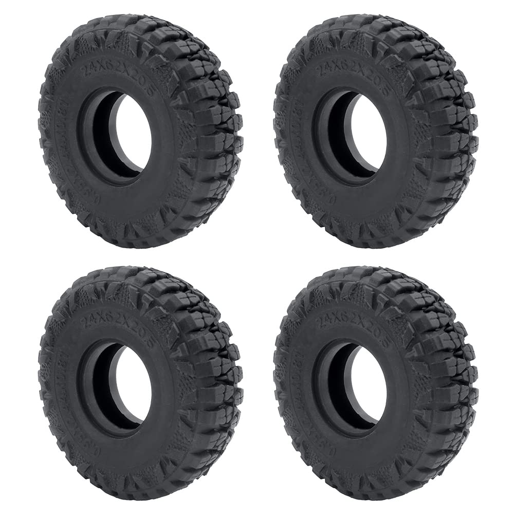 4Pcs 1.0'' Crawler Tires Soft Rubber Beadlock Wheels 62mm for 1:18 TRX4M 1/24 Axial SCX24 Deadbolt Bronco RC Crawler Car Features:1.The tire is very soft, the tread is deep, and the grip is good. 2.Easy to install, you can get the perfect combination of looks and performance on your model kit.3.These tires are made of super soft rubber for good grip over all kind of terrain.4.Fits for 1/24 Axial SCX24 90081 AXI00001 AXI00002 AXI00005 AXI00006 Deadbolt RC Crawler Car.Specification:Tire material: Rubber.Size:Outer Diameter: 62mm ,Inner Diameter: 24mm,Width: 22mm.Net Weight: 61g/4pcs.Pacakge Includes:4pcs SCX24 Tires