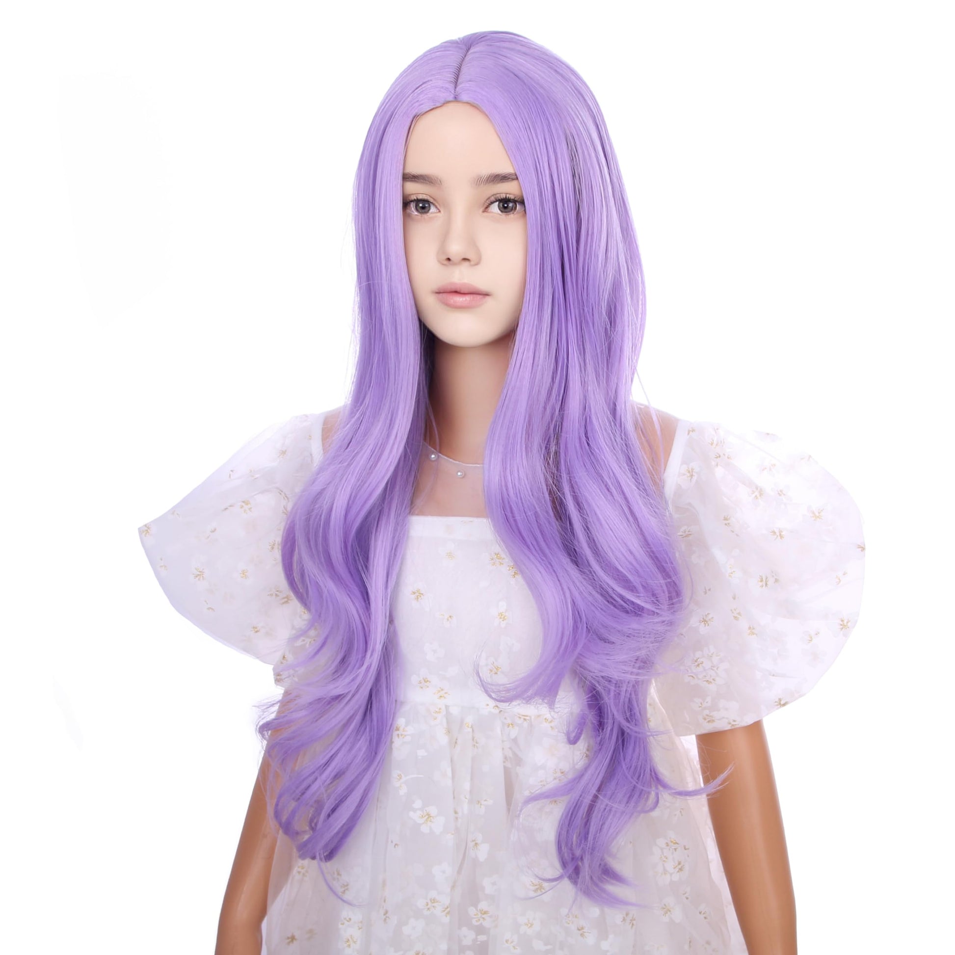 DUDUWIG Child Lavender Purple Wig Kids Long Light Purple Middle Part Wig Long Wavy Curly Wigs for Girls Heat Resistant Synthetic