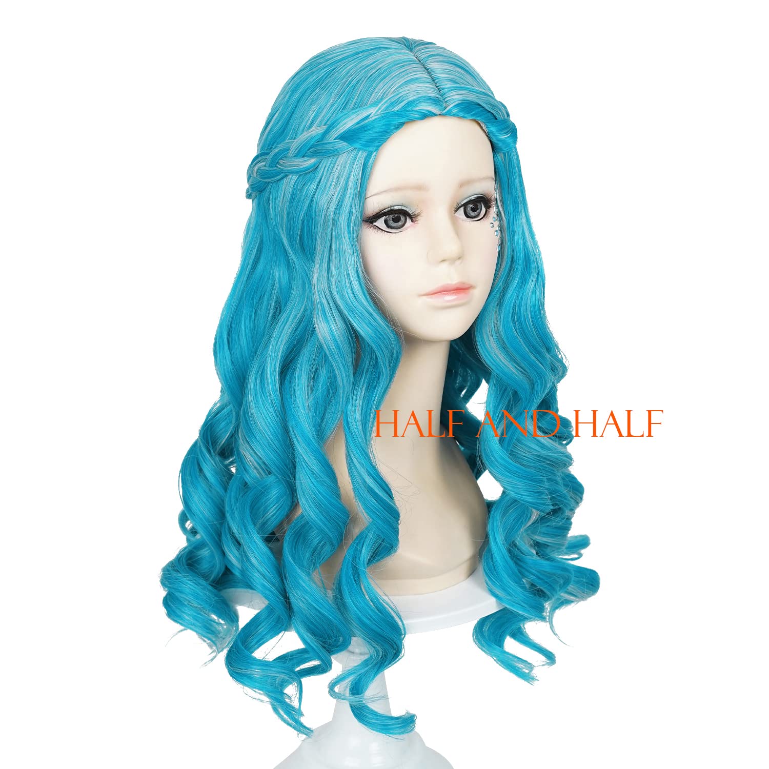 View compareLong Curly Blue Wig For Kids With Rhinestones & Wig Cap, Blue Gradient Wave Wigs Toddler Child Synthetic Fiber Hair Blue Wigs Fo