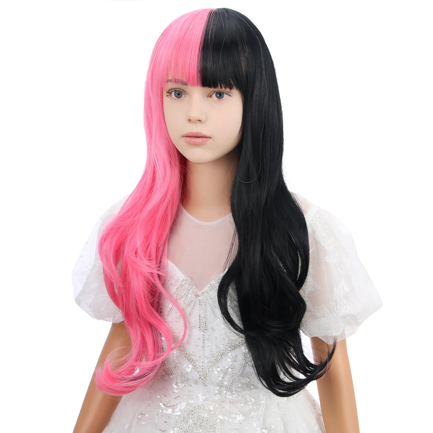 View compareWavelnm Kids Black Pink Wig With Bangs Child Half Pink And Half Black Wig Long Wavy Curly Wig For Girls Synthetic Wigs With Wig