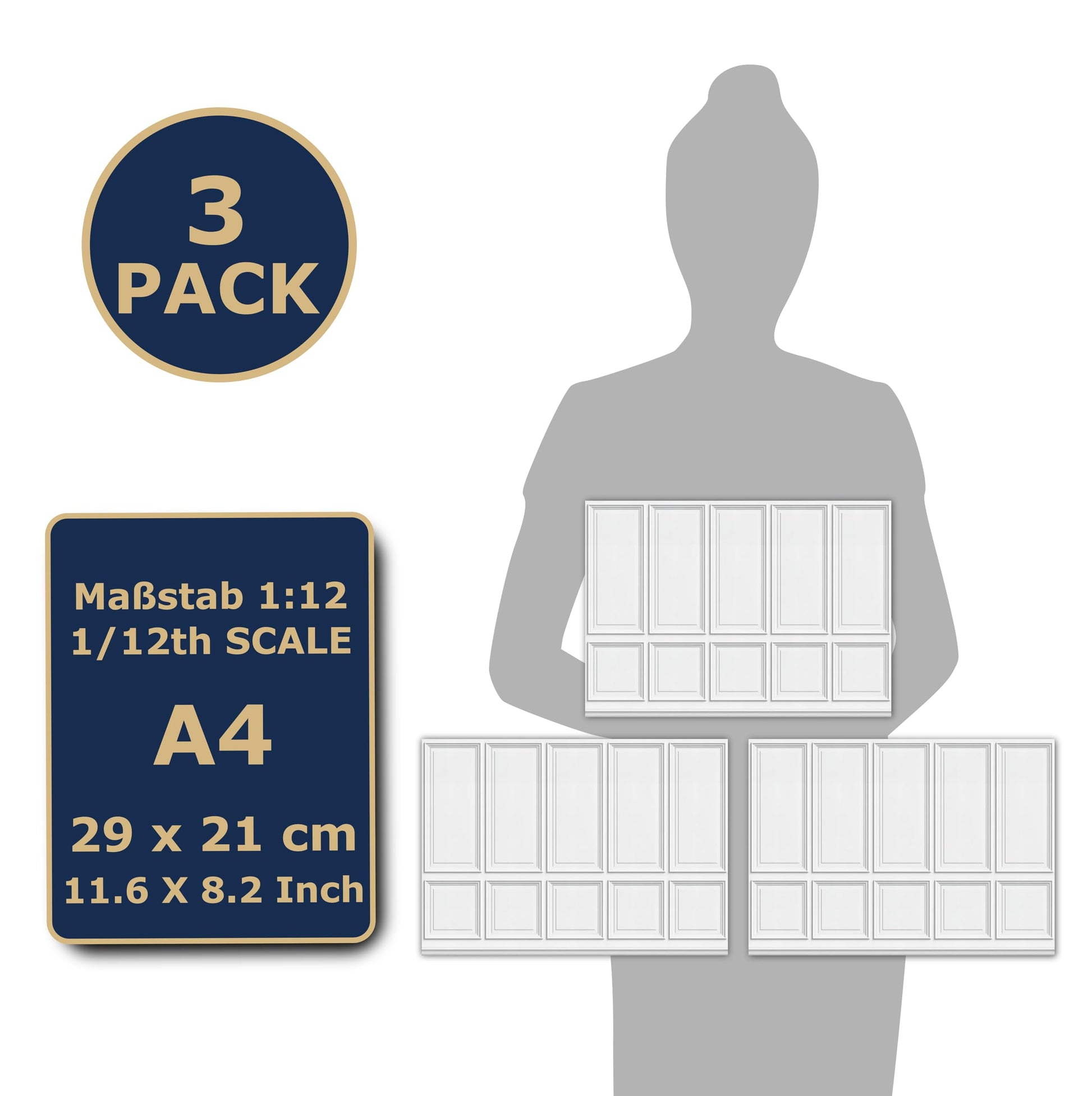 3 Sheets Self-Adhesive Wall Cladding For Dollhouse 1:12 Scale (Wood Paneled Wall (Renaissance))