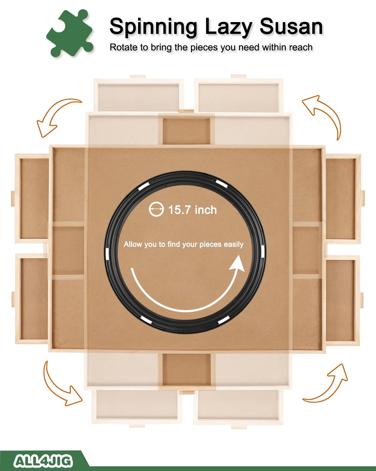 All4Jig 1000 Pieces Rotating Puzzle Board With 6 Drawers And Cover,22''X30''Portable Wooden Jigsaw Puzzle Table For Adults,Lazy