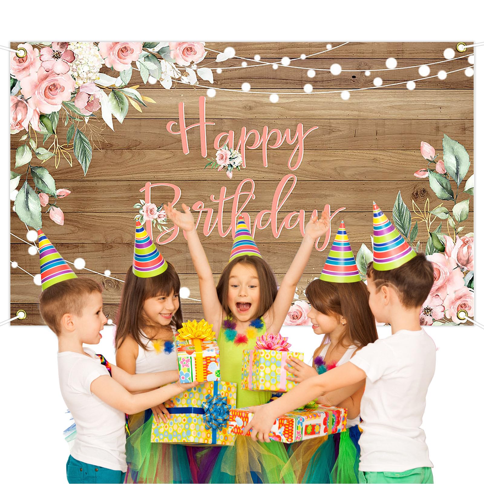 Avezano Rustic Wood Birthday Banner Happy Birthday Party Decorations Pink Floral Girls Women Banner Photo Booth Studio Props 70.