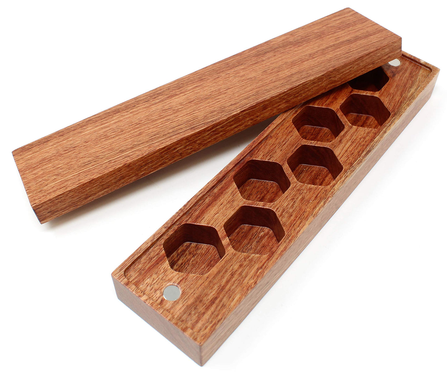 Bcb Wear Wood Dice Storage Case With Magnetic Lid - Box Holds Polyhedral 7 Die Set For Dnd, D&D, Rpg - Rosewood