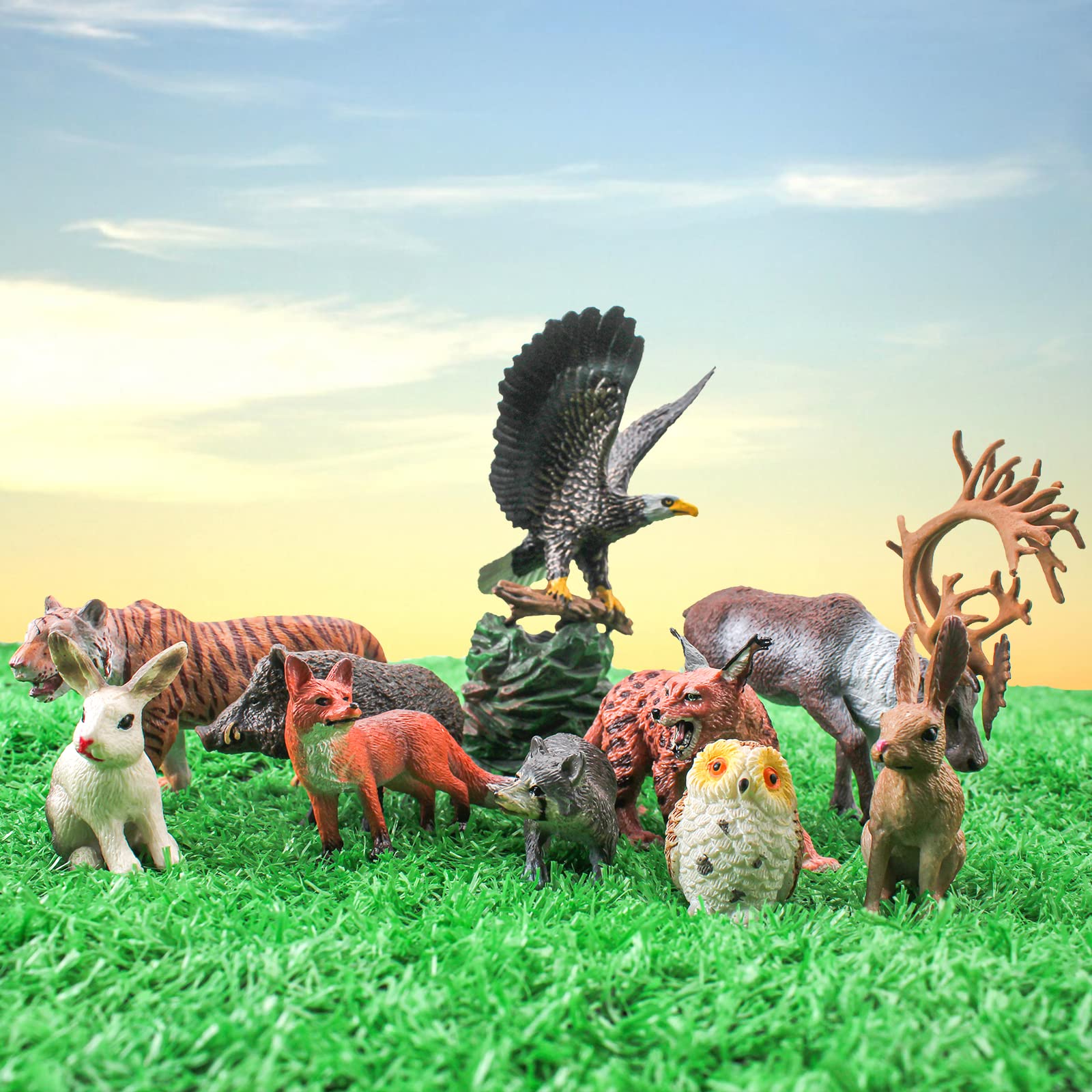 BRETOYIN Forest Animals Figures Playset 10PCS Woodland Animal Figurines Toys Set Plastic Animals Figure Tiger Figurine Wolf Figu