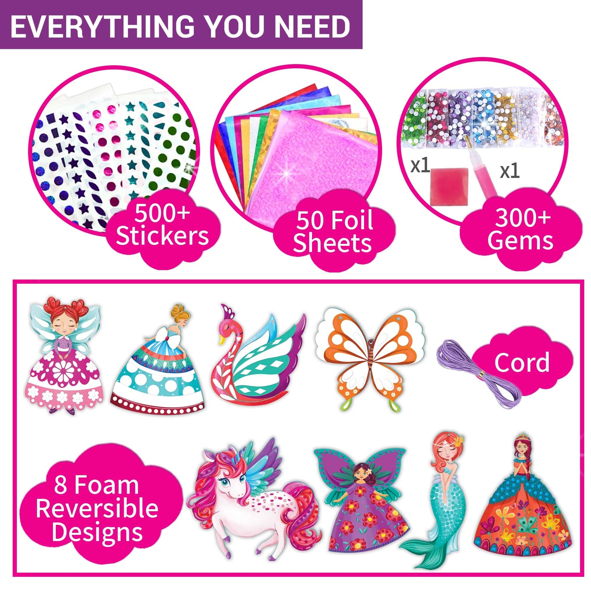 View compareChalk and Chuckles Art and Craft Kit, Sparkle & Shine Unicorn & Princess, Mess-Free Foil Art and Diamond Painting Set, Birthday