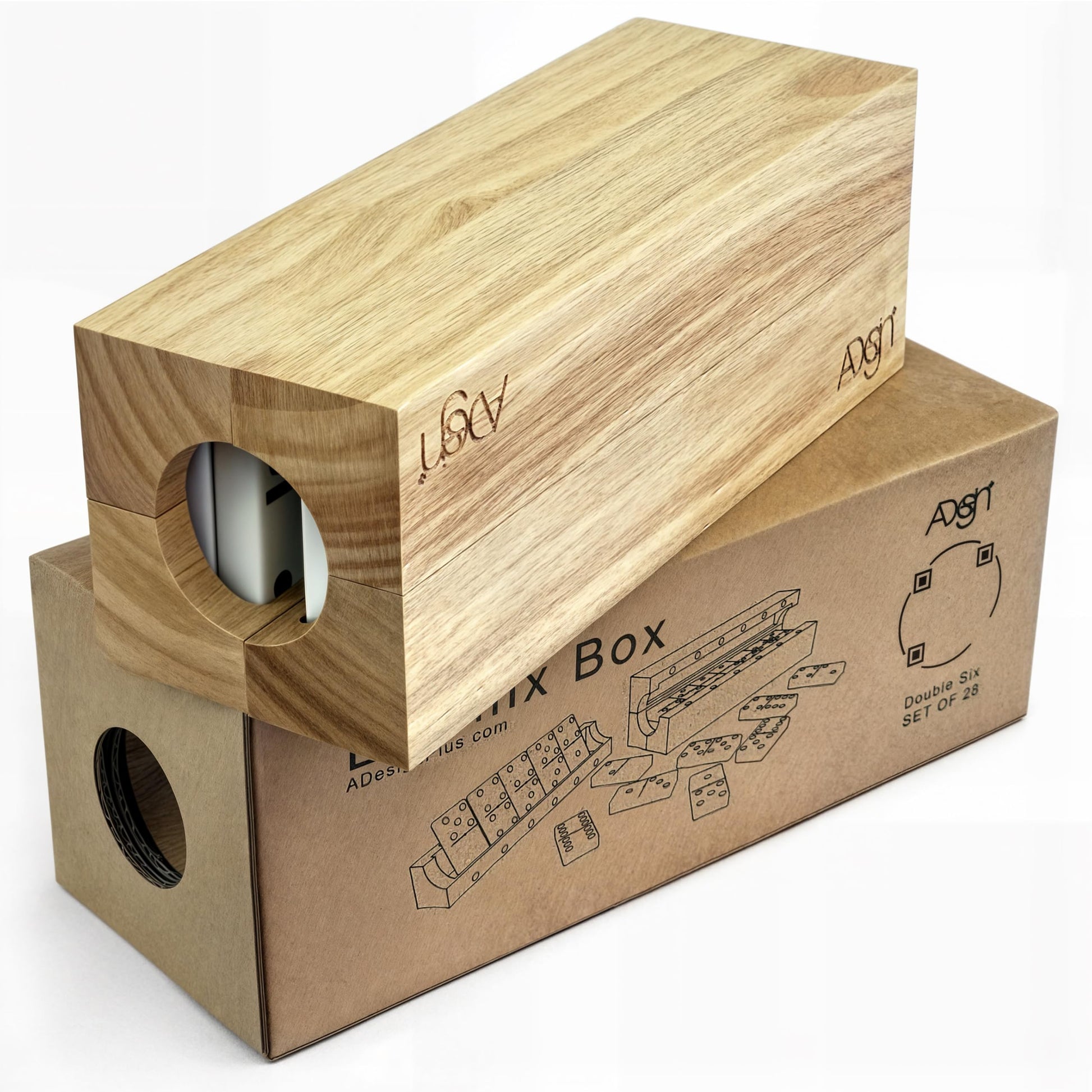 Domino Game Set Of 28 | Professional Double 6S | Multi-Use Box | Trays To Stand Tiles | By Adesign+ (Solid Wood)