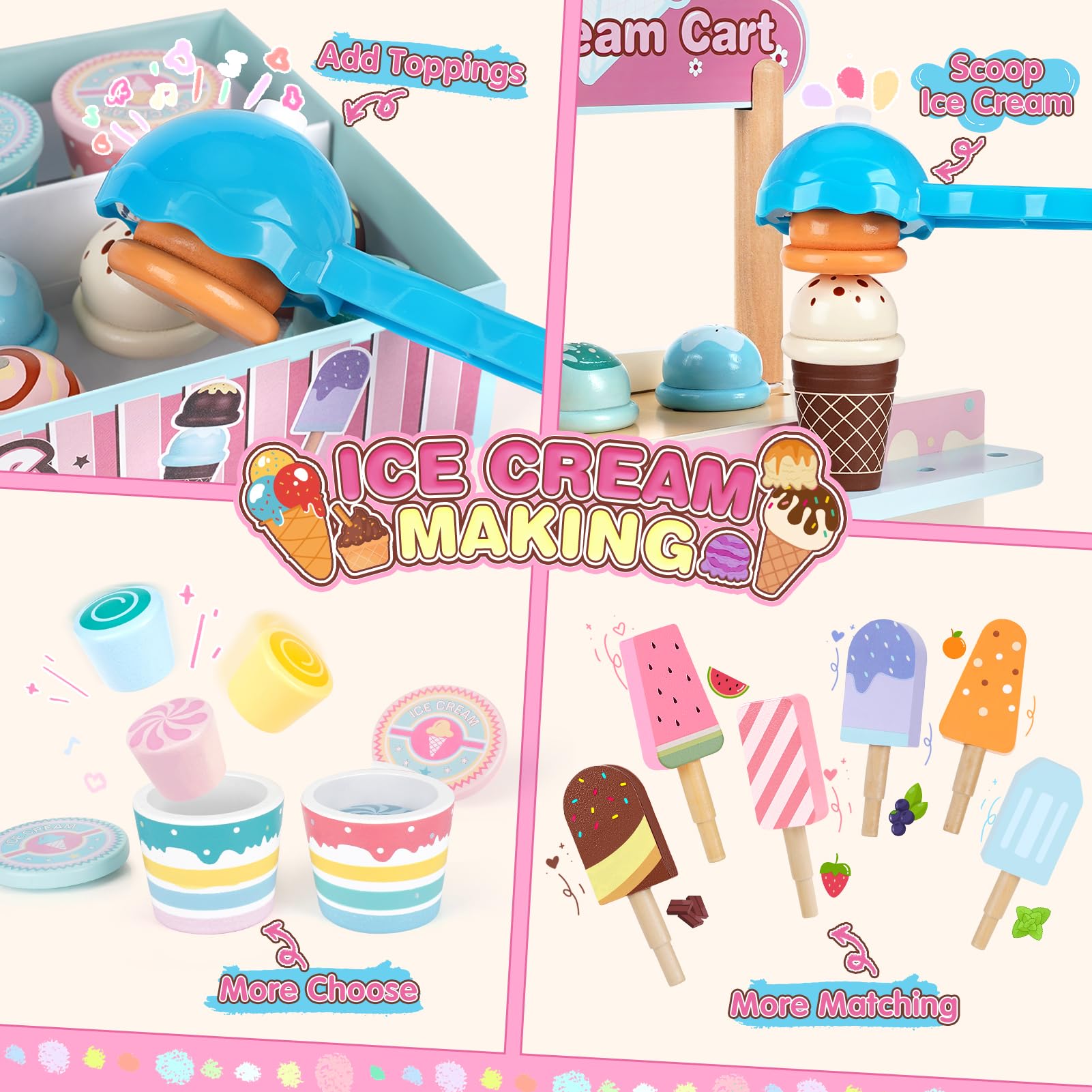 View compareDreamon Wooden Ice Cream Toys For Kids Toddlers, 48 Pcs Ice Cream Cart Play Kitchen Accessories With Menu, Pretend Money, Wooden