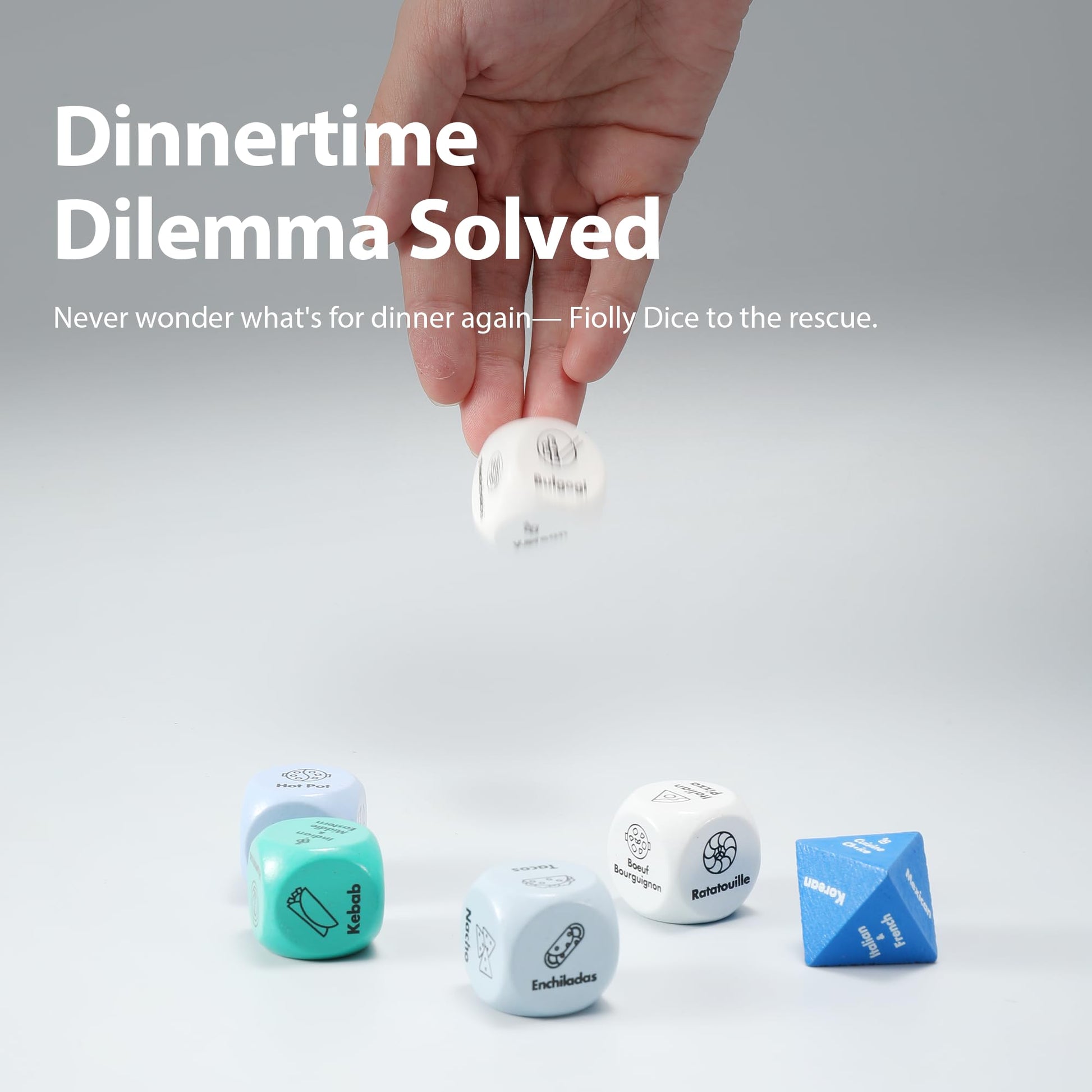 Never argue about what's for dinner again with the Fiolly Dice Game! This innovative meal decision maker is designed for those who find it hard to choose what to eat. Whether you're planning a dinner party, a date night, or just a regular meal, this game adds a dash of excitement to your culinary adventures.