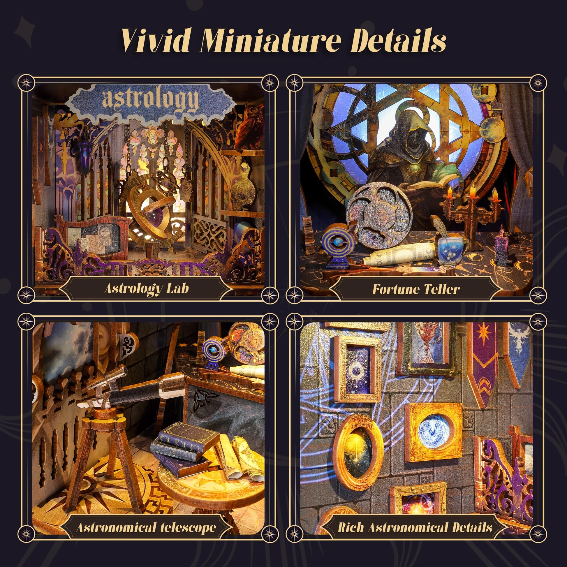 ?Dive into the Mystical World of Astrology?Unlock the secrets of the cosmos with this 3D wooden puzzle book nook kit. Featuring a celestial astrology lab with an astronomer