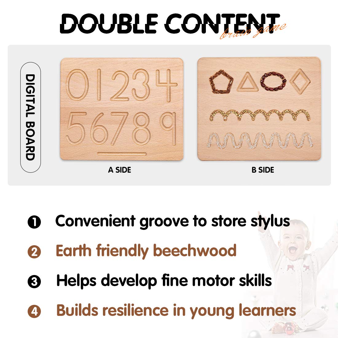 Jetmhh My First Learn To Write Wooden Number Tracing Board Preschool Handwriting Practice For Kids Age 3 4 5 Double-Sided Learni