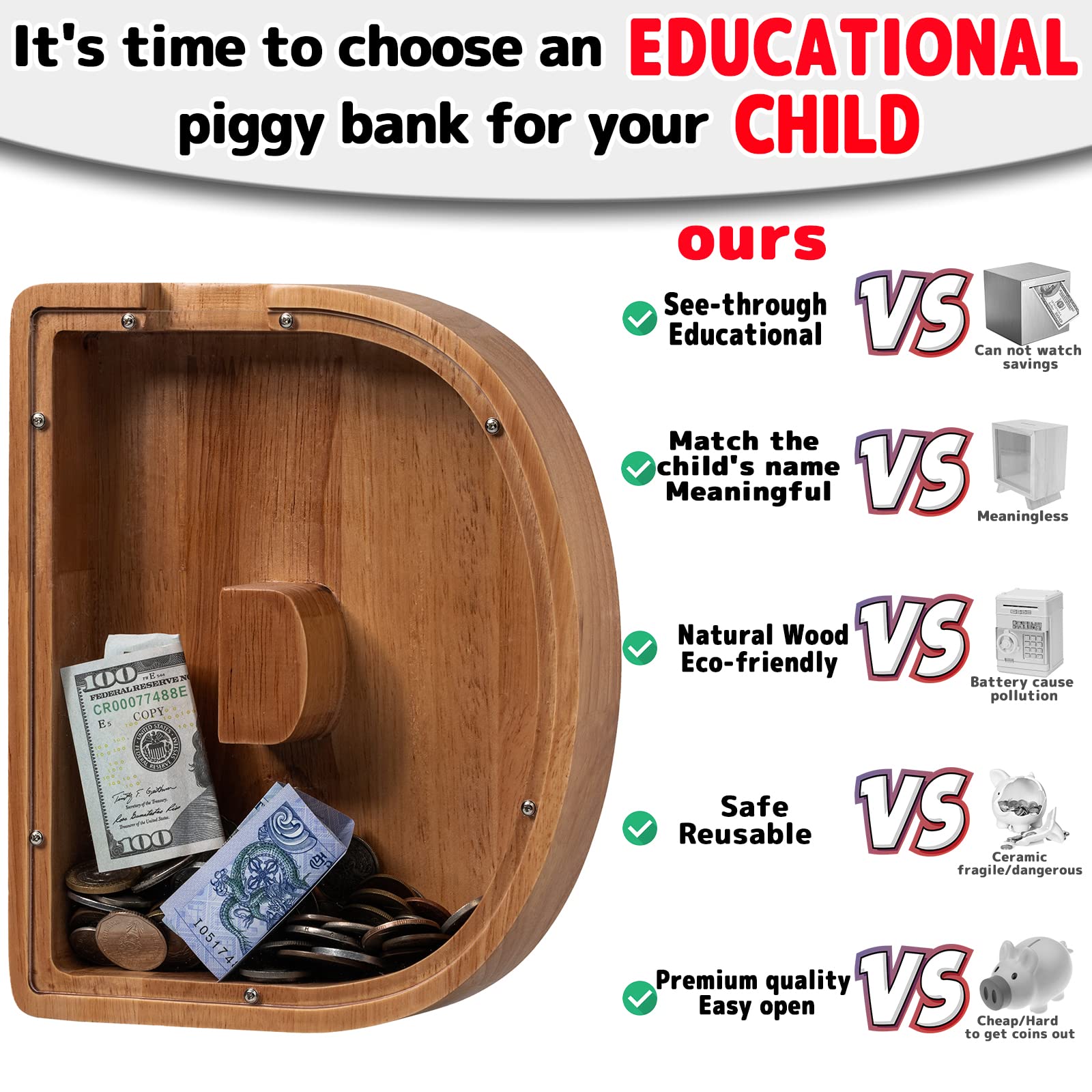 View compareLadenk 12 Inch Extra Large Wooden Kids Letter Piggy Bank - Piggy Bank For Boys Girls - Initial D Bank - Alphabet Money Bank For