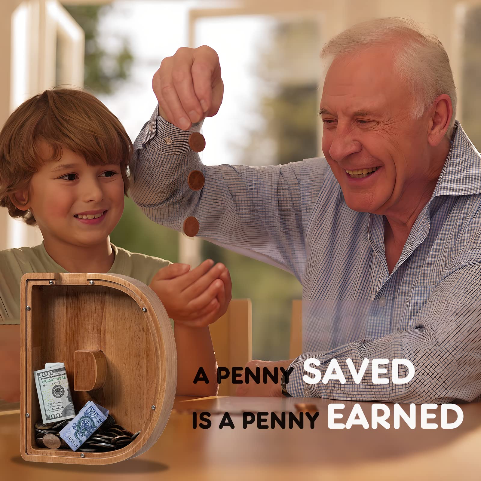 Ladenk 12'' Extra Large Wooden Kids Letter Piggy Bank for Boys Girls