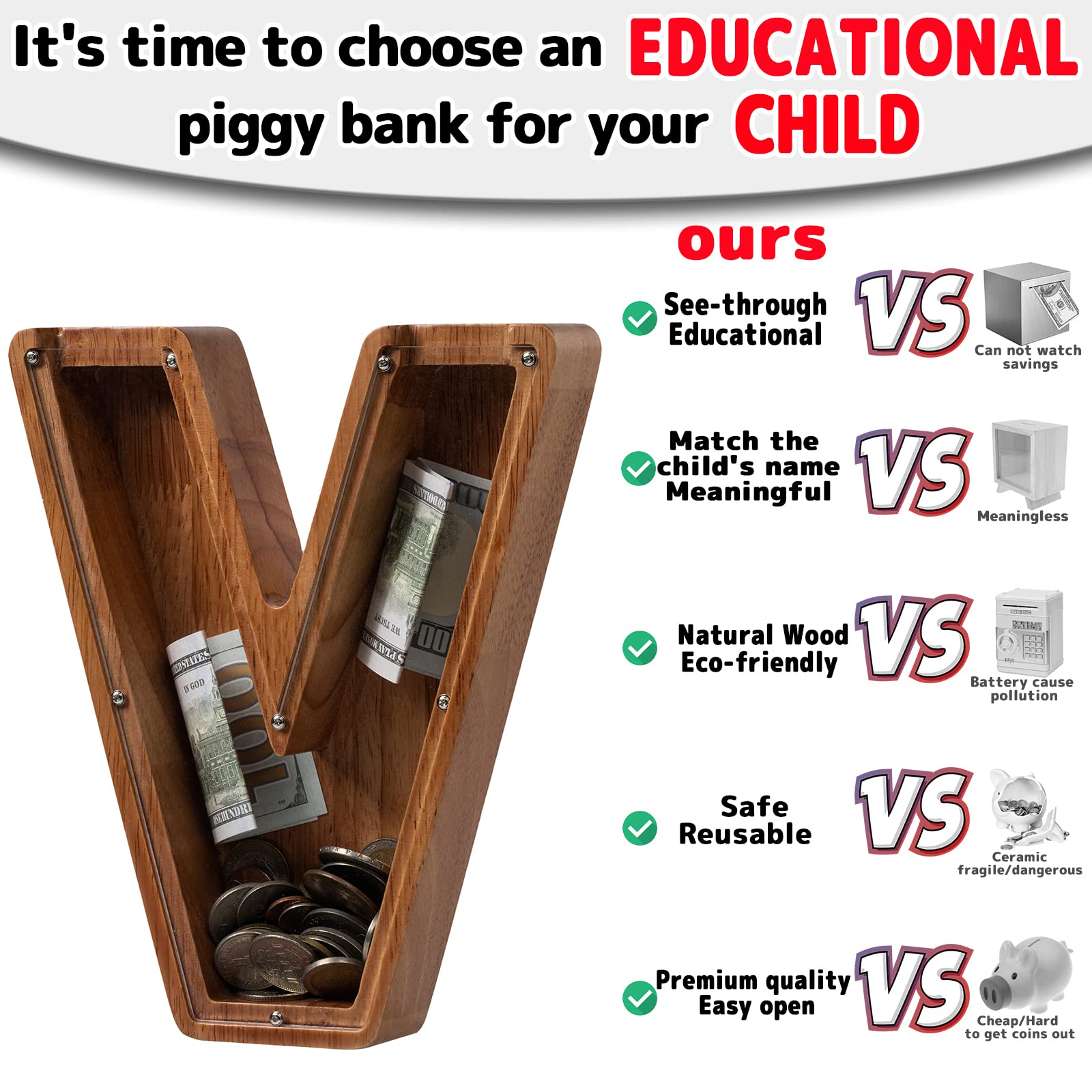 View compareLadenk 12 Inch Extra Large Wooden Kids Letter Piggy Bank - Piggy Bank For Boys Girls - Initial V Bank - Alphabet Money Bank For