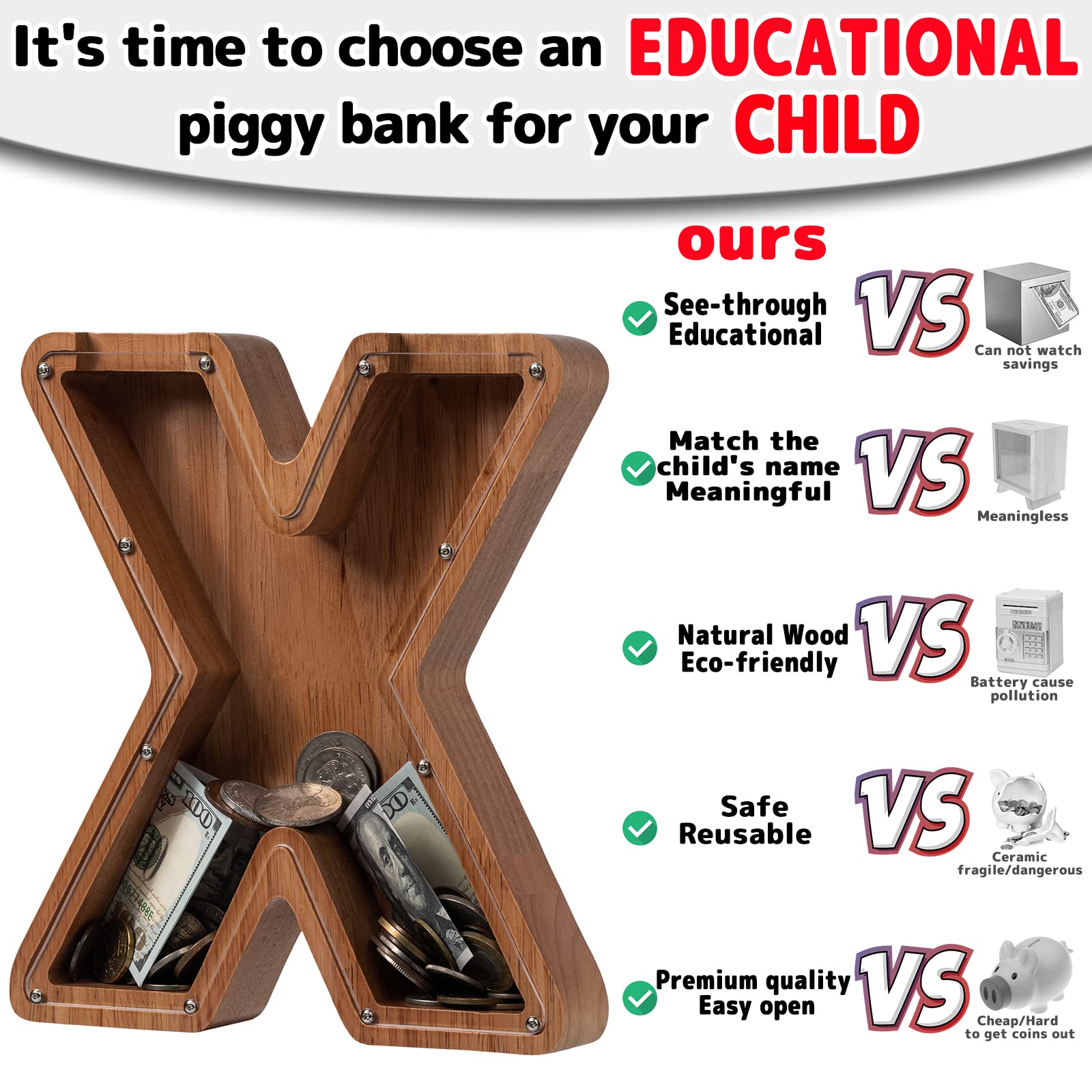 View compareLadenk 12 Inch Extra Large Wooden Kids Letter Piggy Bank - Piggy Bank For Boys Girls - Initial X Bank - Alphabet Money Bank For