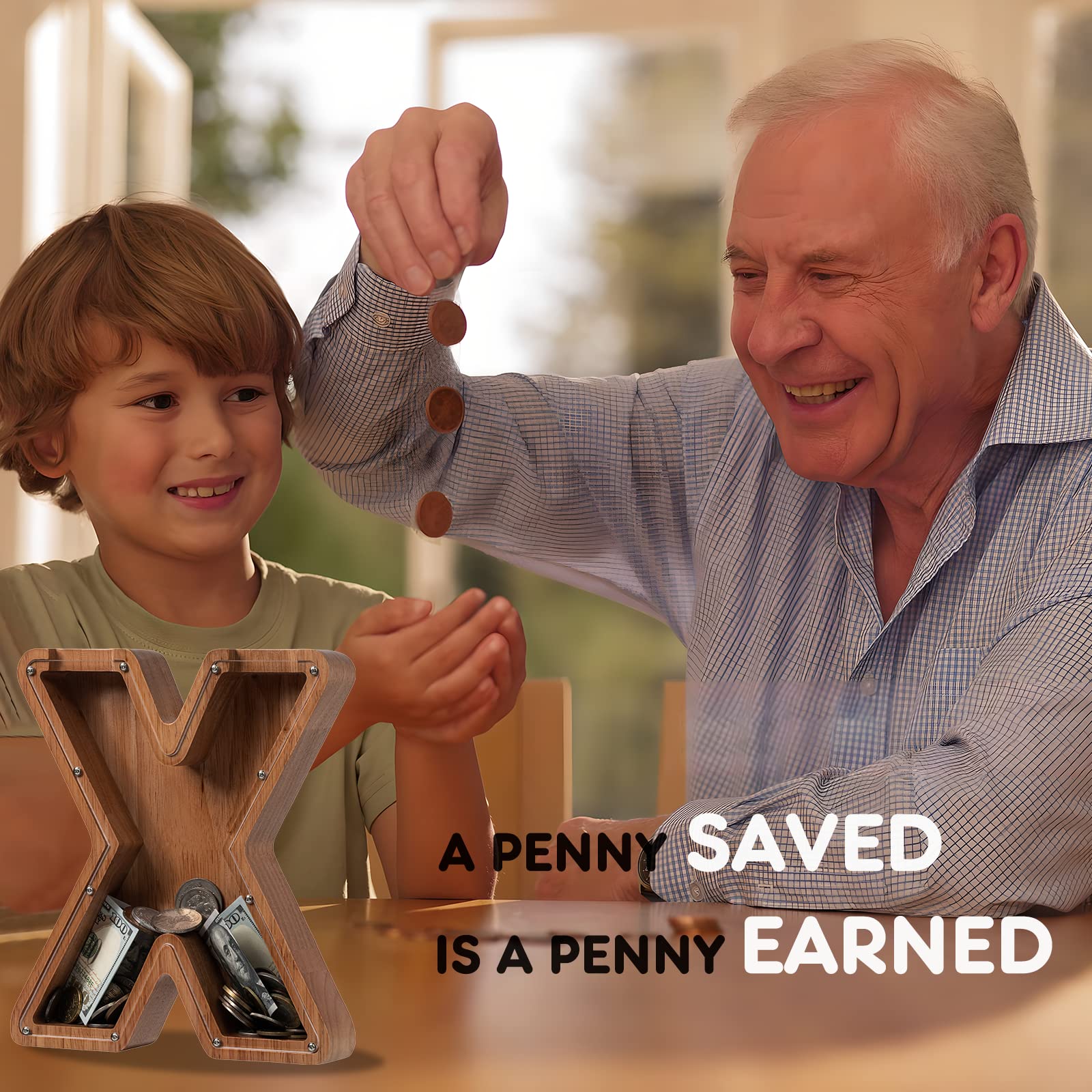 Ladenk 12 Inch Extra Large Wooden Kids Letter Piggy Bank - Piggy Bank For Boys Girls - Initial X Bank - Alphabet Money Bank For