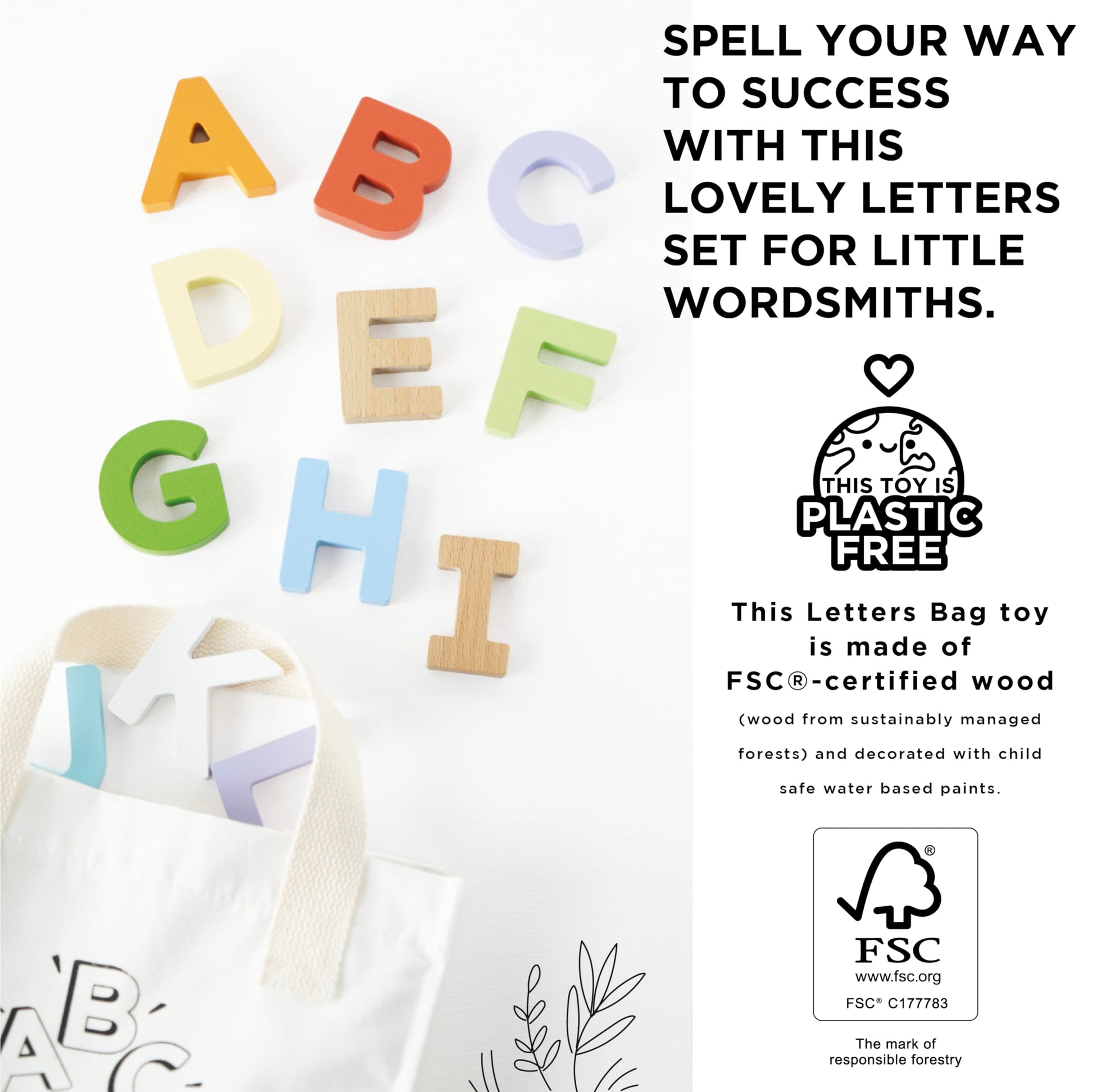 Le Toy Van - Wooden Letters In A Bag Toy, Plastic Free | Suitable For Age 18+ Months