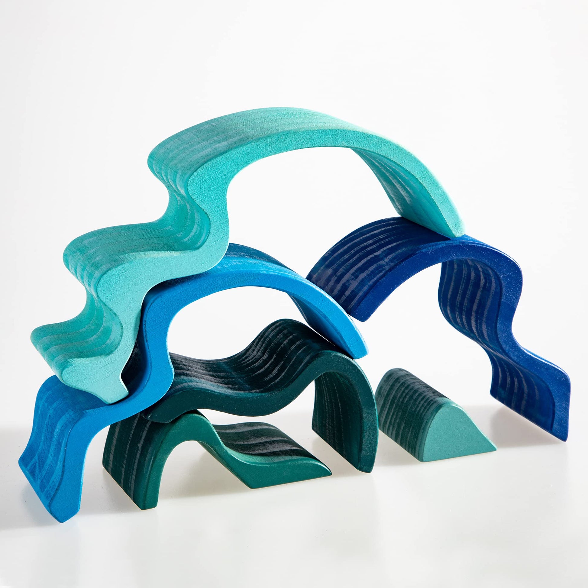 View compareMerryheart Wooden Rainbow Stacking Toy, Water Wave Elements Wooden Stacker, Various Shapes Nesting Stacking Blocks, Waldorf & Mo