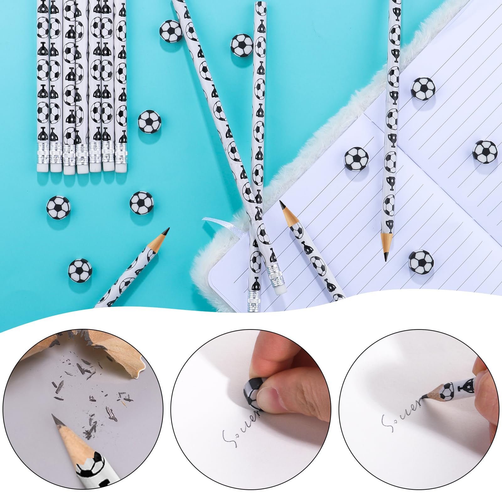 Moncinday 60PCs Soccer Pencils Soccer Erasers for Kids Wooden Pencils for Soccer Themed Birthday Party Favors Students Stationer