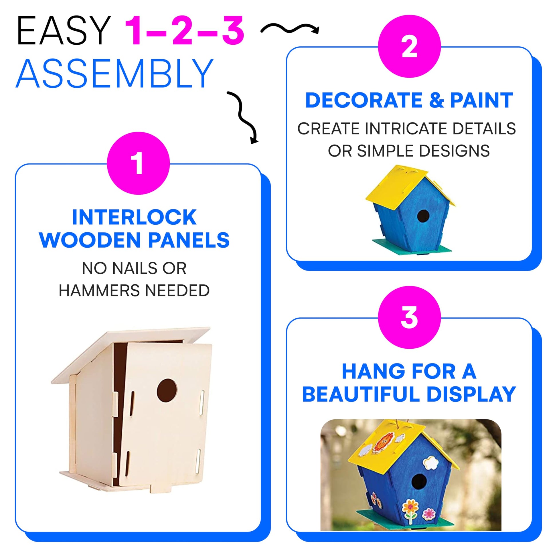 View compareNeliblu 2 Pack Birdhouse Kits for Kids - 6.1 x 5.9 x 3.0 - DIY Craft and Garden Decoration, Pre-cut, Easy to Assemble for Birdwa