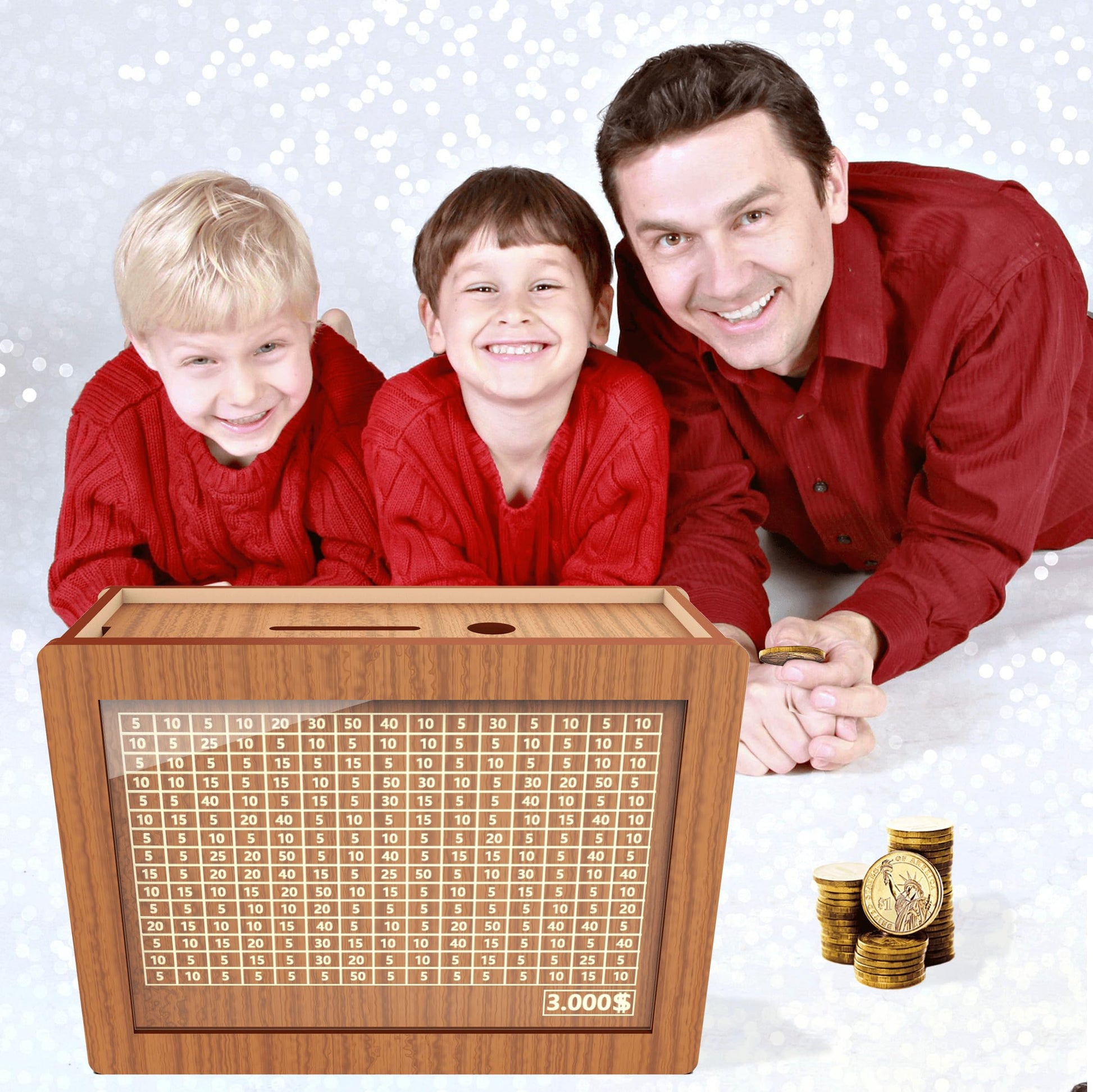 Wooden Money Box Our Money Box With Savings Target Made Of High-Quality Wood Is Very Easy To Assemble And Can Be Put Together In Just A Few Minutes With A Few Simple Steps. Once You Have Put The Gold Coins Or Notes In, You Can Mark The Amount On The Money Box With A Marker. When The Surface Of The Wooden Box Is Full Of Marks, Your Money-Saving Project Is Complete. The Money Box Encourages Perseverance And Gives Your Child A Sense Of Achievement.
